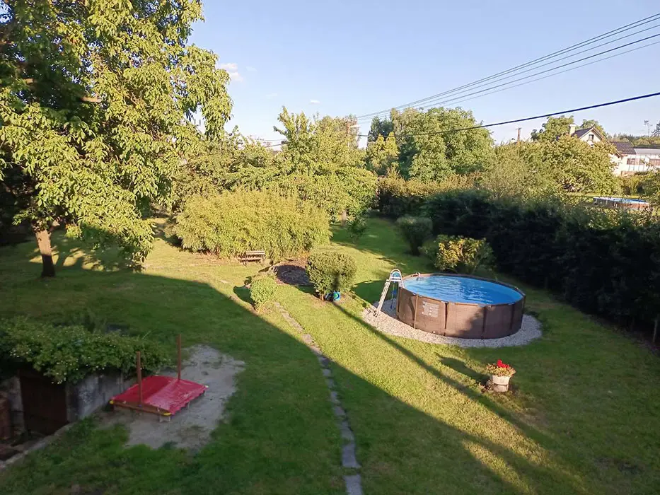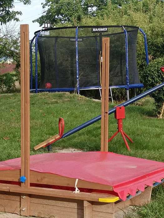 Kryté posezení, gril, lehátka, ohniště s posezením, pro děti - pískoviště, trampolína, nadzemní bazén, venkovní vířivka