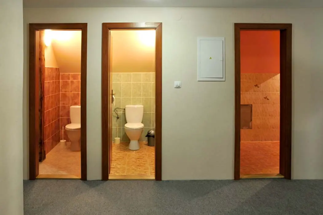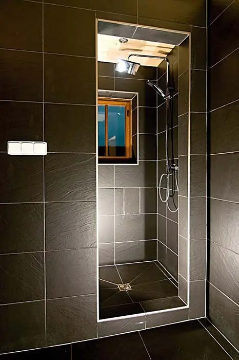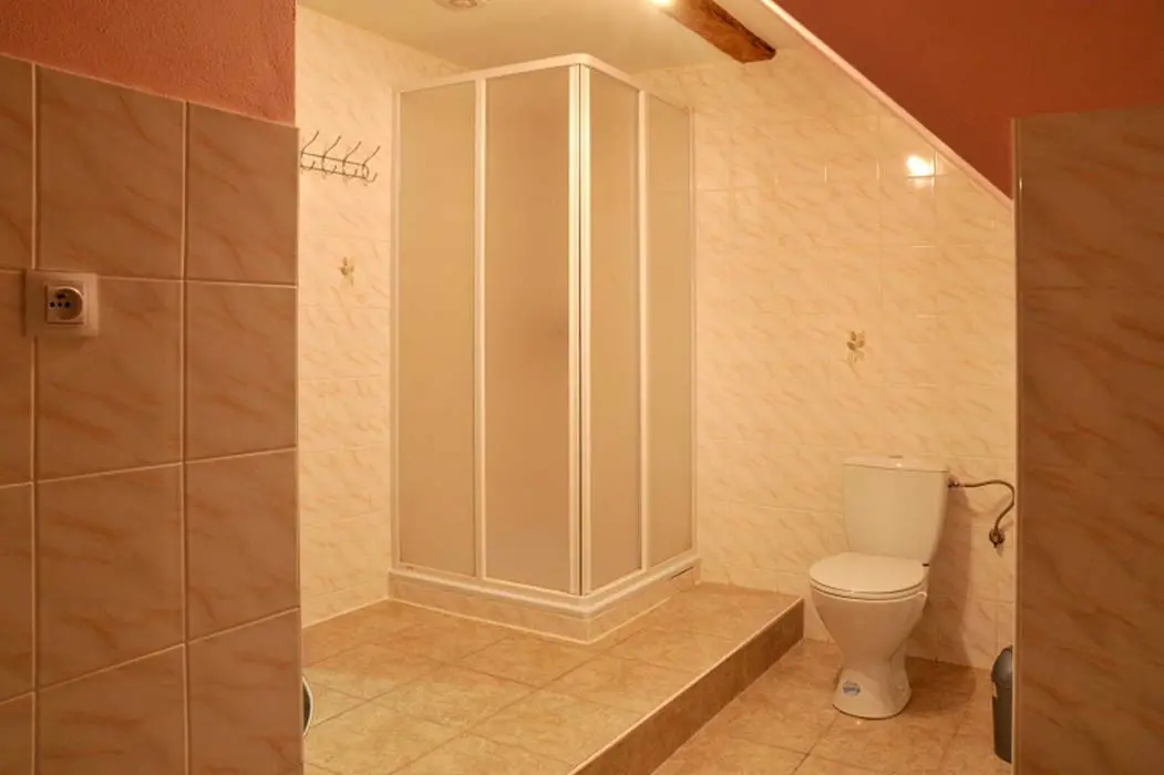V suterénu, s další sprchou a místností k odpočinku