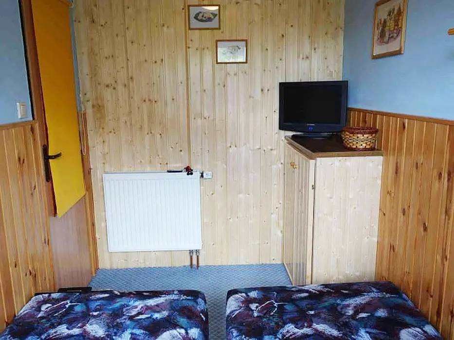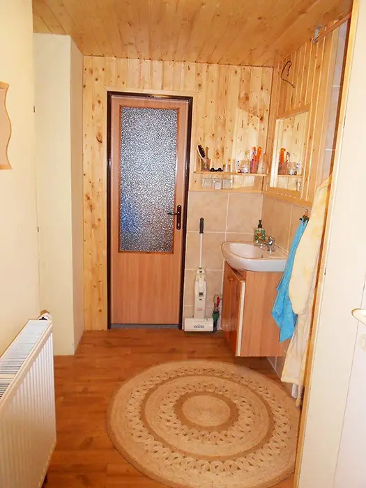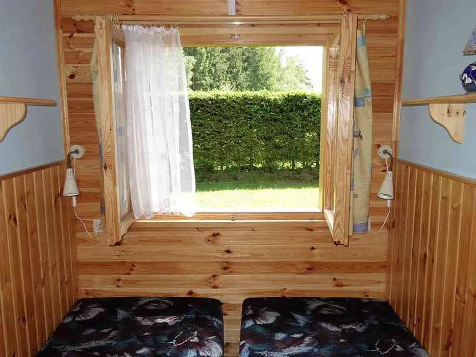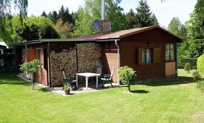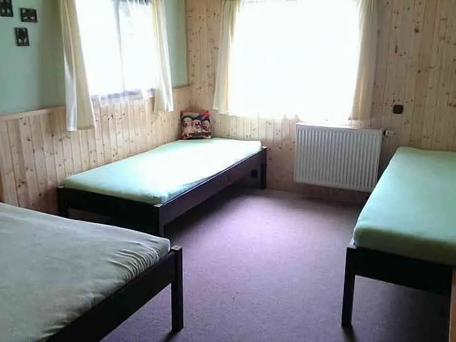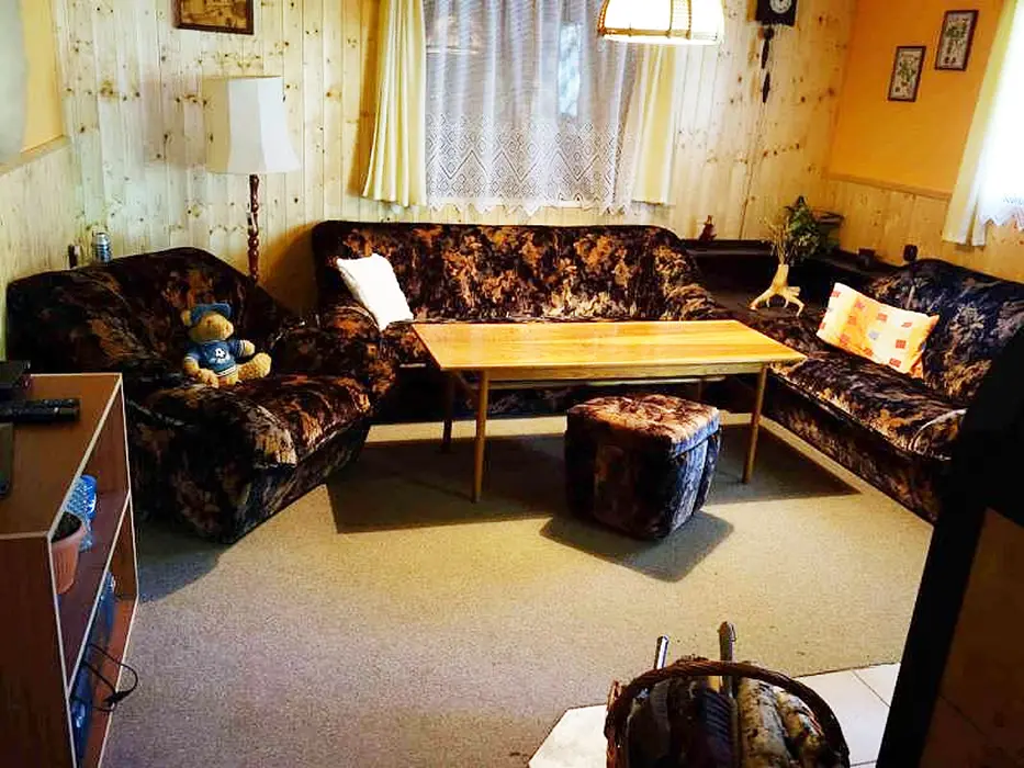 Obývací pokoj s posezením - sedací souprava, TV, SAT, rádio, krbová kamna. Malá kuchyňka s jídelnou - el. dvouplotýnkový vařič, el. pečící trouba, lednice s mrazákem, mikrovlnka, varná konvice, myčka, nádobí, kávovar. 2 ložnice - 1x2, 1x3 lůžka. Soc. zařízení - sprchový kout, umyvadlo, samostatné WC. Topení - krbová kamna + el. přímotop