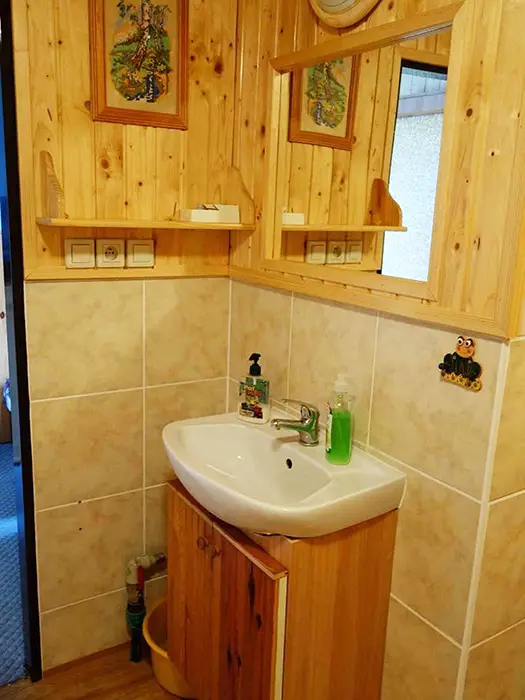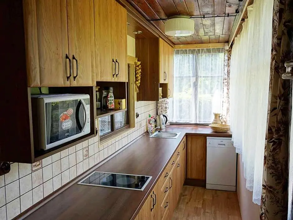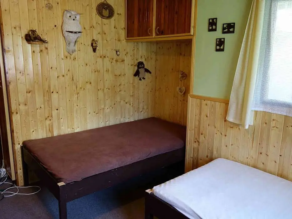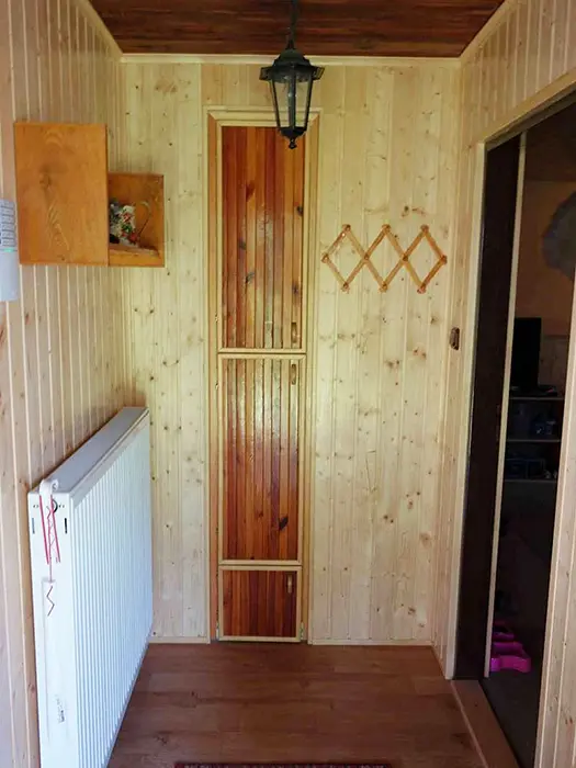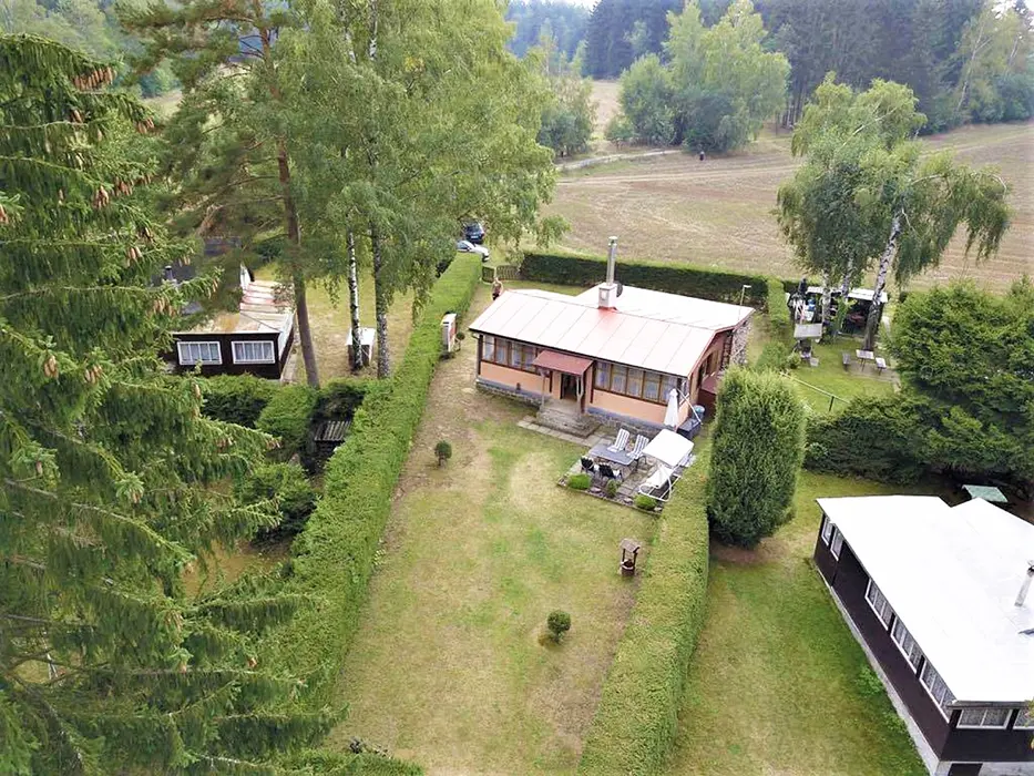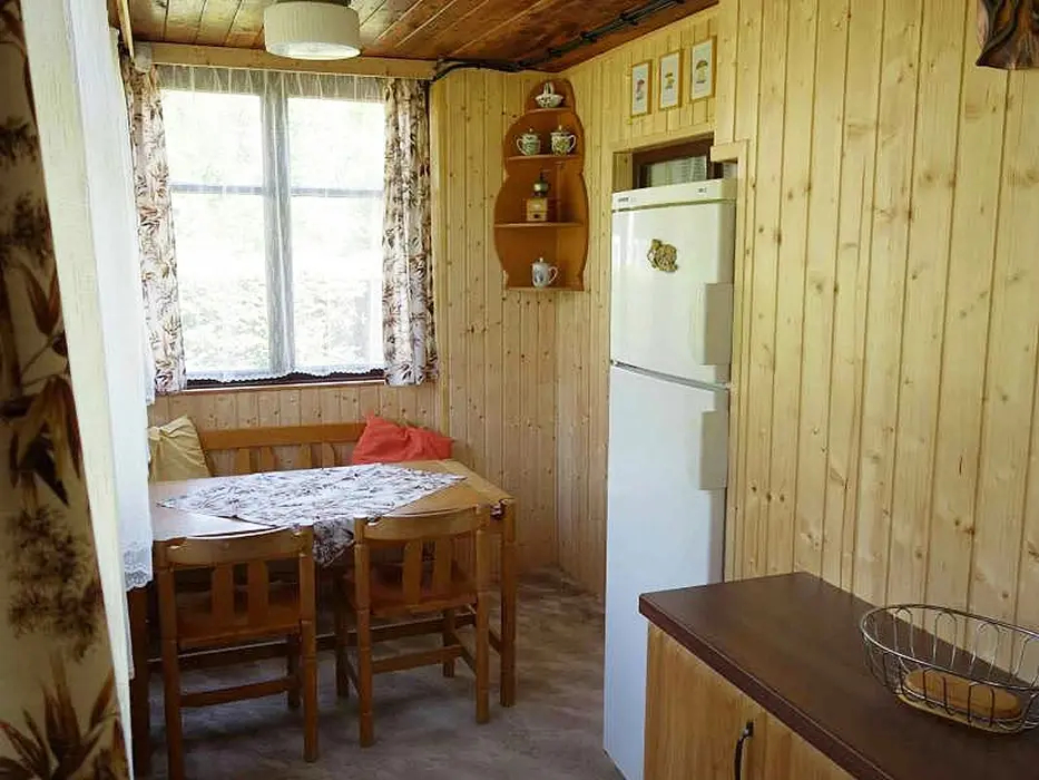Obývací pokoj s posezením - sedací souprava, TV, SAT, rádio, krbová kamna. Malá kuchyňka s jídelnou - el. dvouplotýnkový vařič, el. pečící trouba, lednice s mrazákem, mikrovlnka, varná konvice, myčka, nádobí, kávovar. 2 ložnice - 1x2, 1x3 lůžka. Soc. zařízení - sprchový kout, umyvadlo, samostatné WC. Topení - krbová kamna + el. přímotop