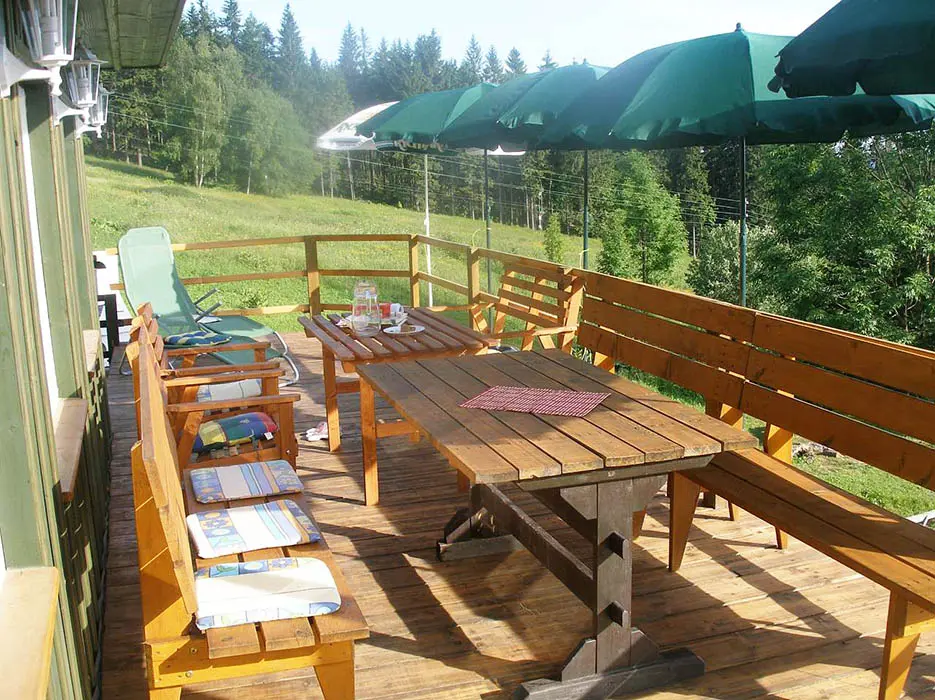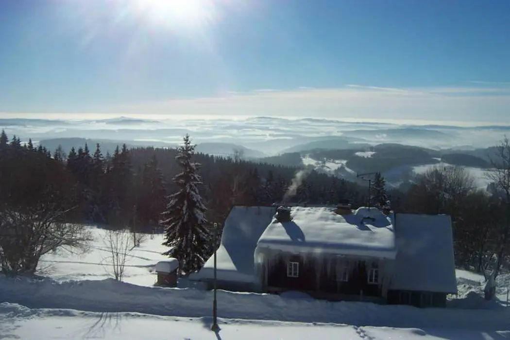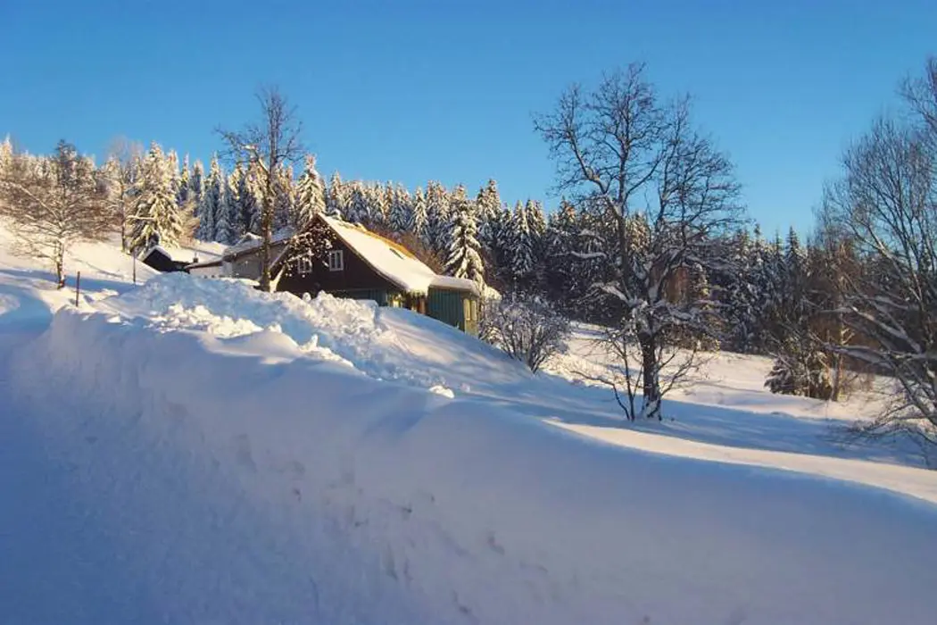 Přímo u chalupy lze nasadit běžky a napojit se na strojově udržované desítky km dlouhé běžecké trasy