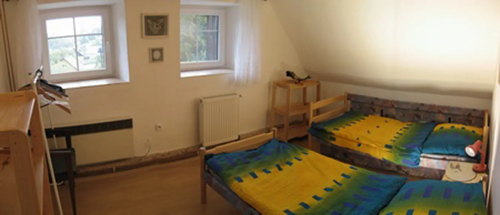 32 km Dvůr Králové nad Labem, 13 km Trutnov, 8 km Žacléř, v obci Bernartice s výhledem na Sněžku a Vraní Hory. Z druhé strany chalupy byt majitele se samostatným vchodem i pozemkem