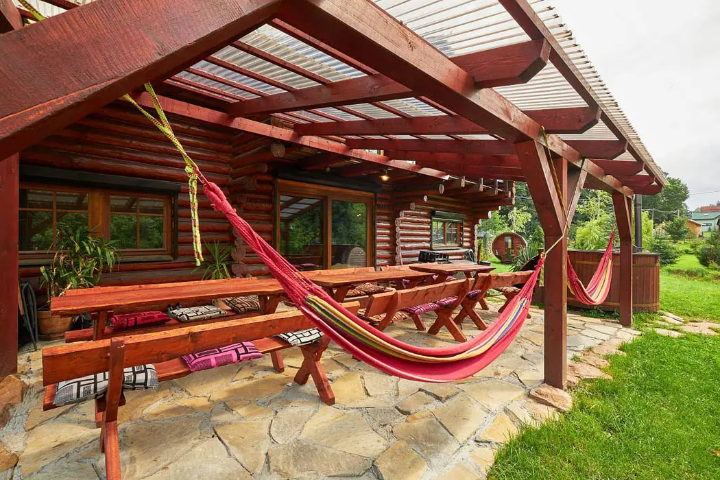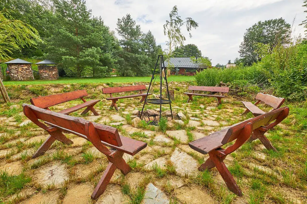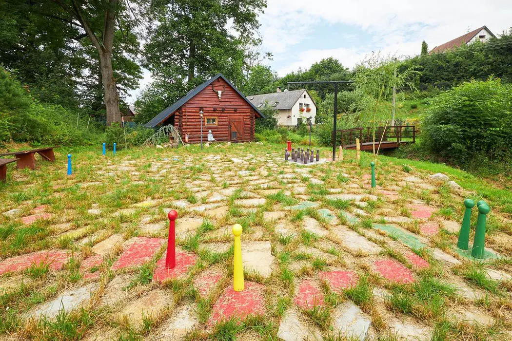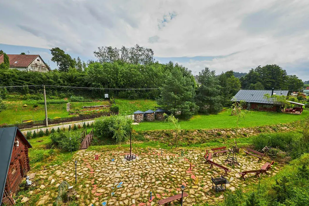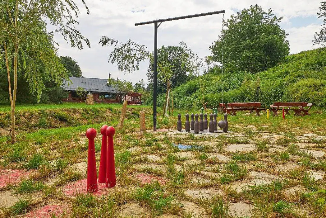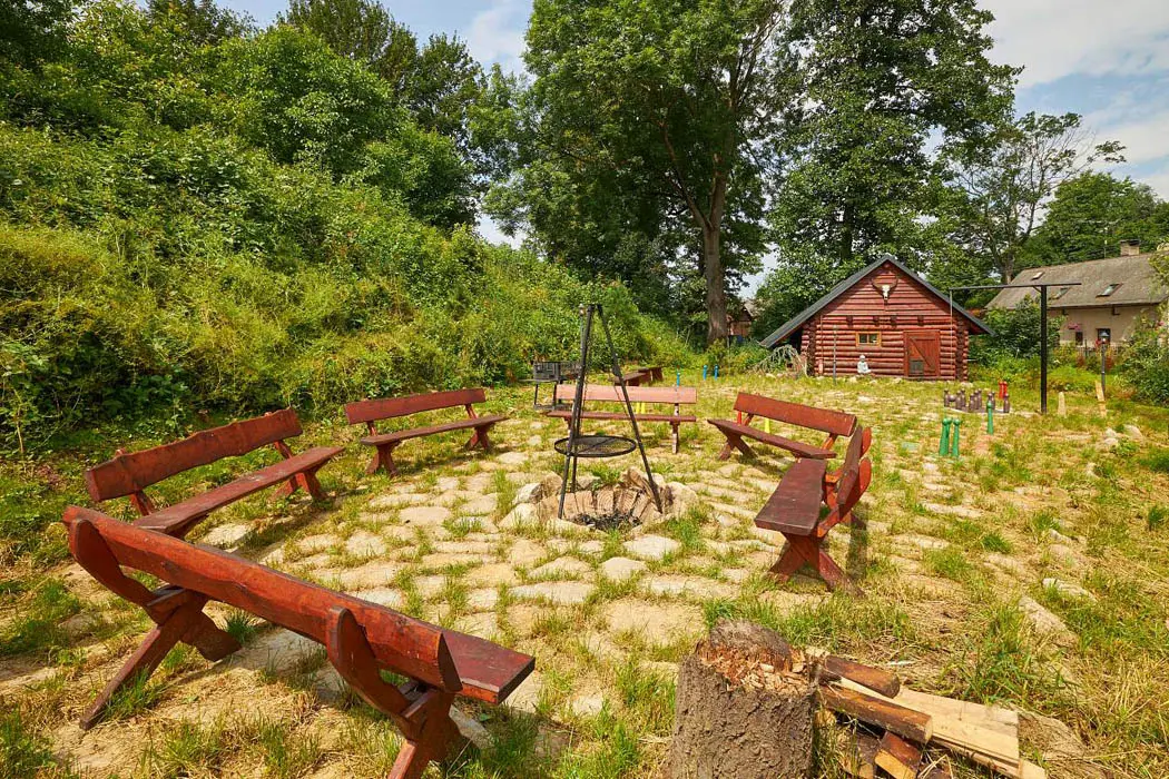 2 kryté terasy - zahradní nábytek, gril, venkovní kotlík 14 l, ohniště, venkovní hry: gigantické "Člověče nezlob se " , "věž" Gigant " Mikado", Kroket