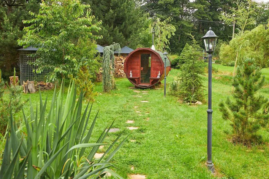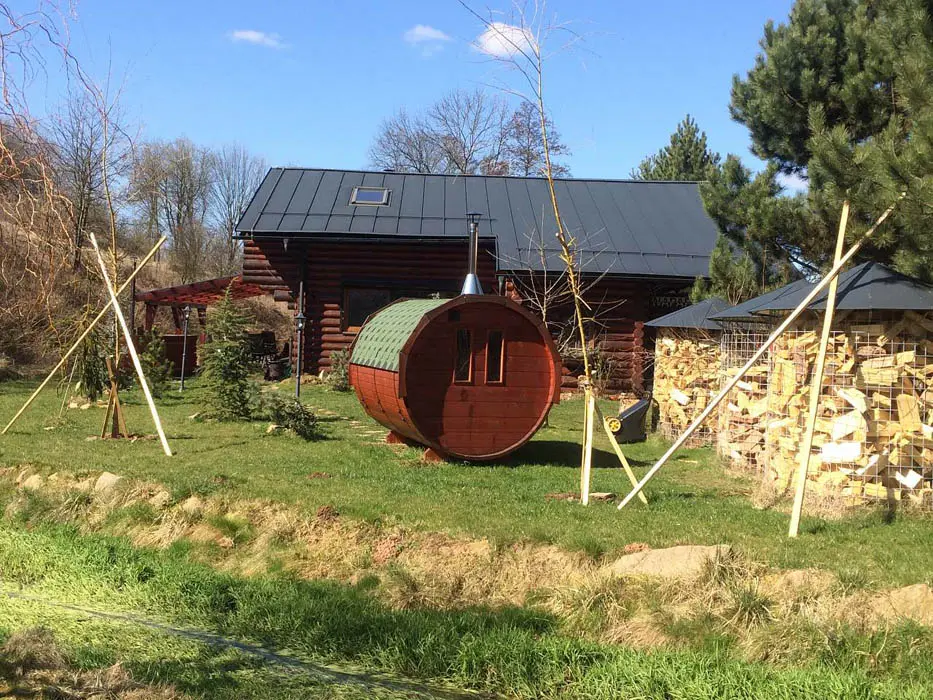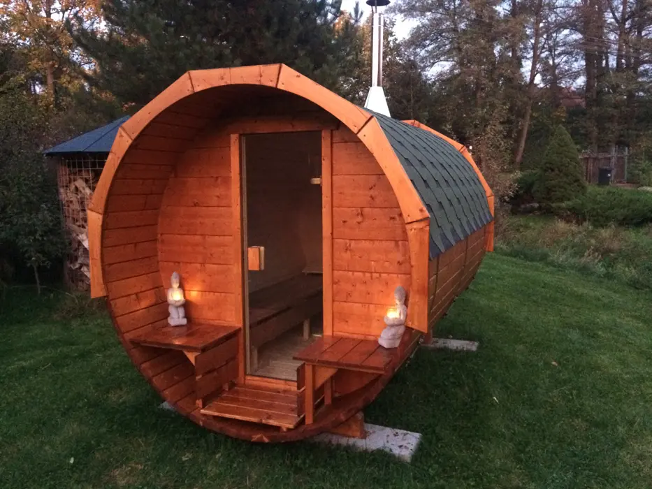 ANO - finská sauna pro 6 osob + vytápěná káď pro 6 - 8 osob, topí se do horka cca 5 hodin