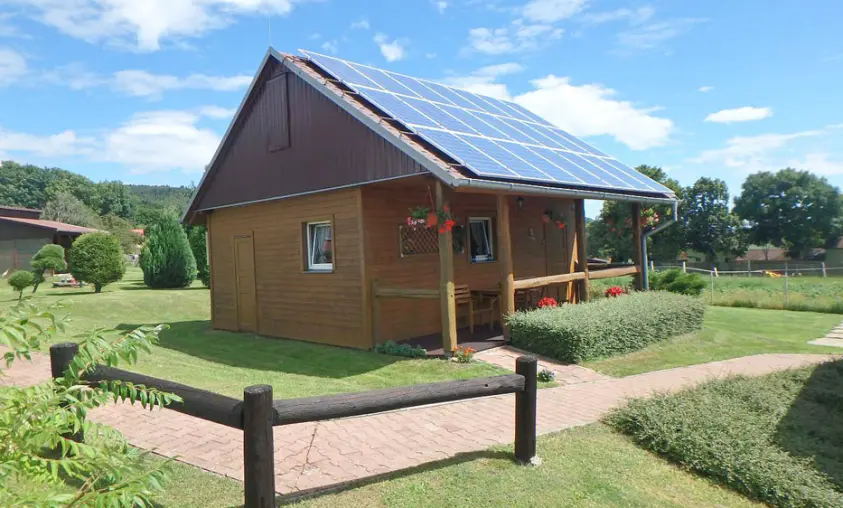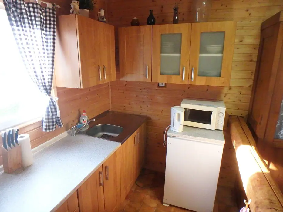 Vstupní předsíň, obytná ložnice s kuchyňským koutem - válenda 1 lůžko, TV, stůl a židle, kuch. linka - standardně vybavená. 1 ložnice - 1x4 lůžka (2 palandy). Koupelna s vanou, umyvadlo, WC. Topení - el. přímotopy
