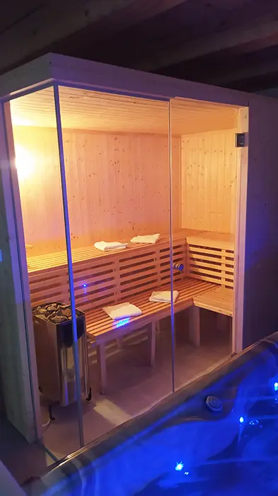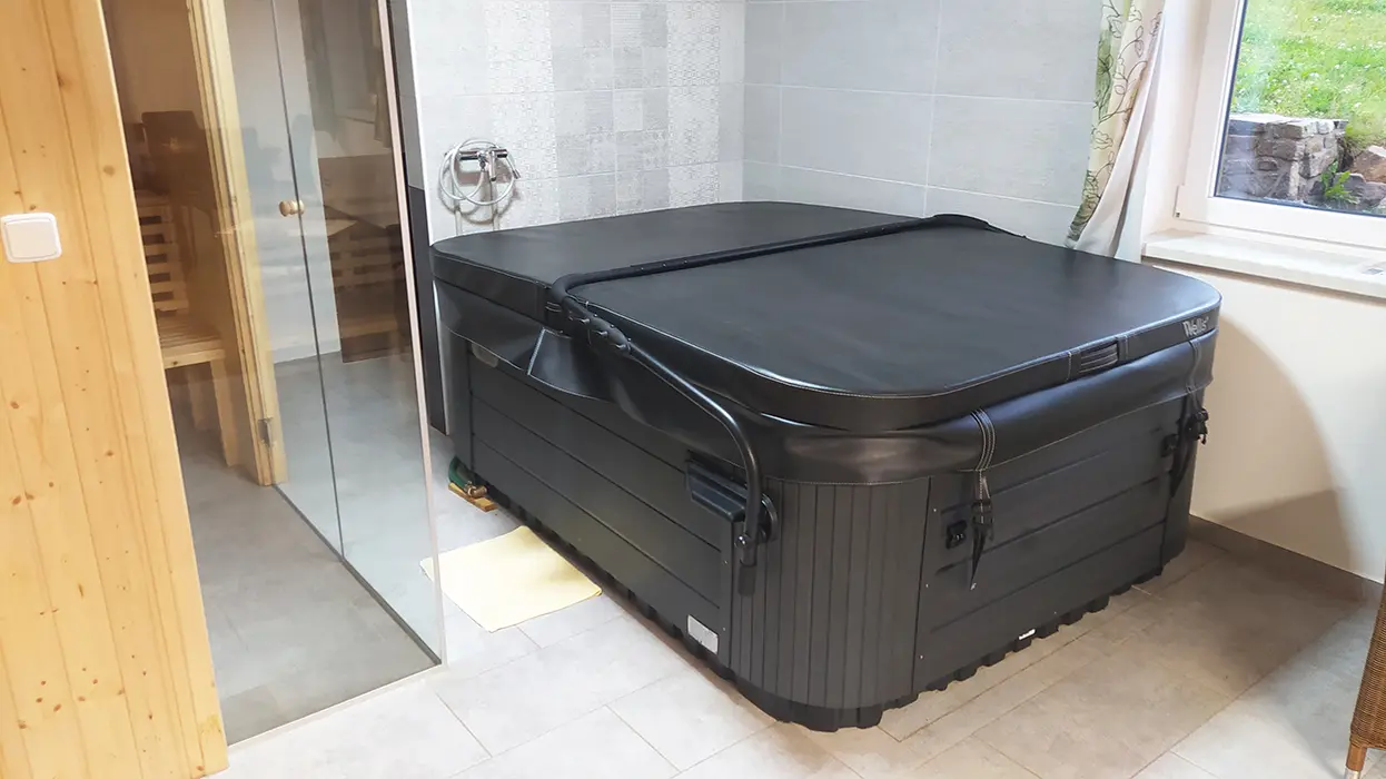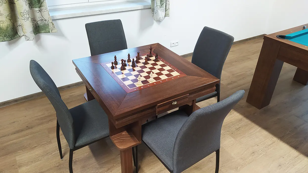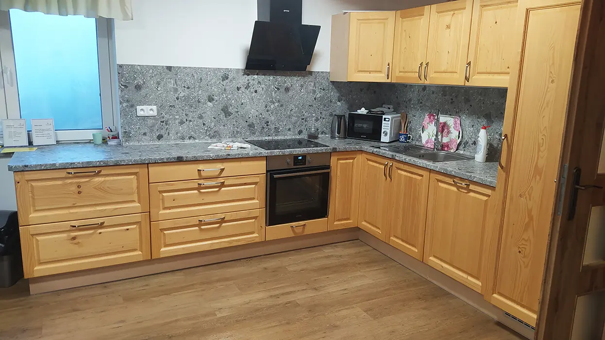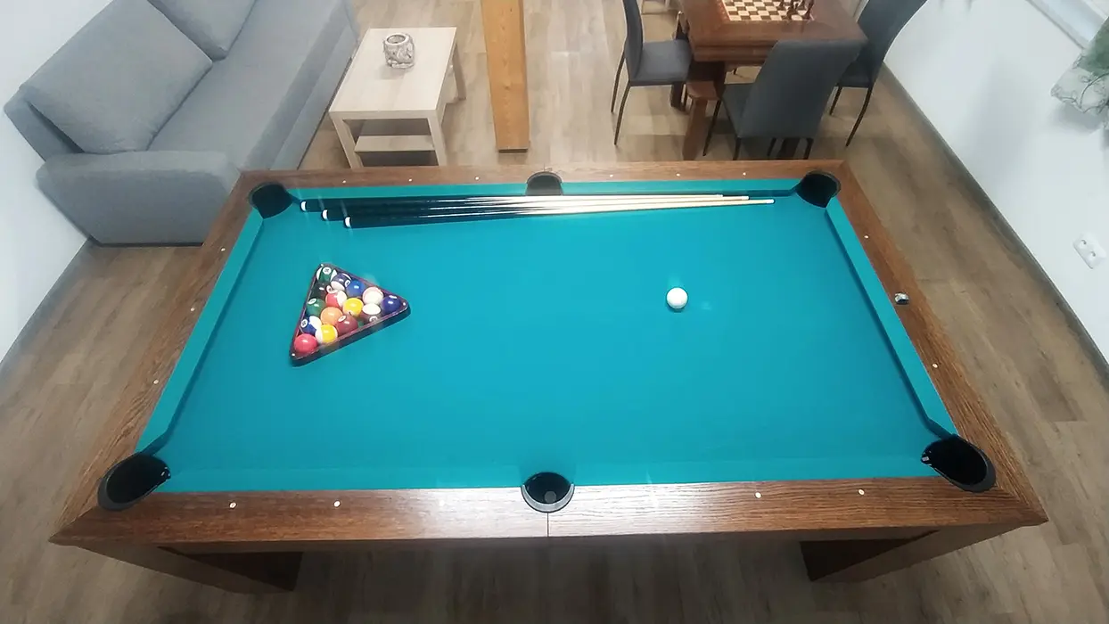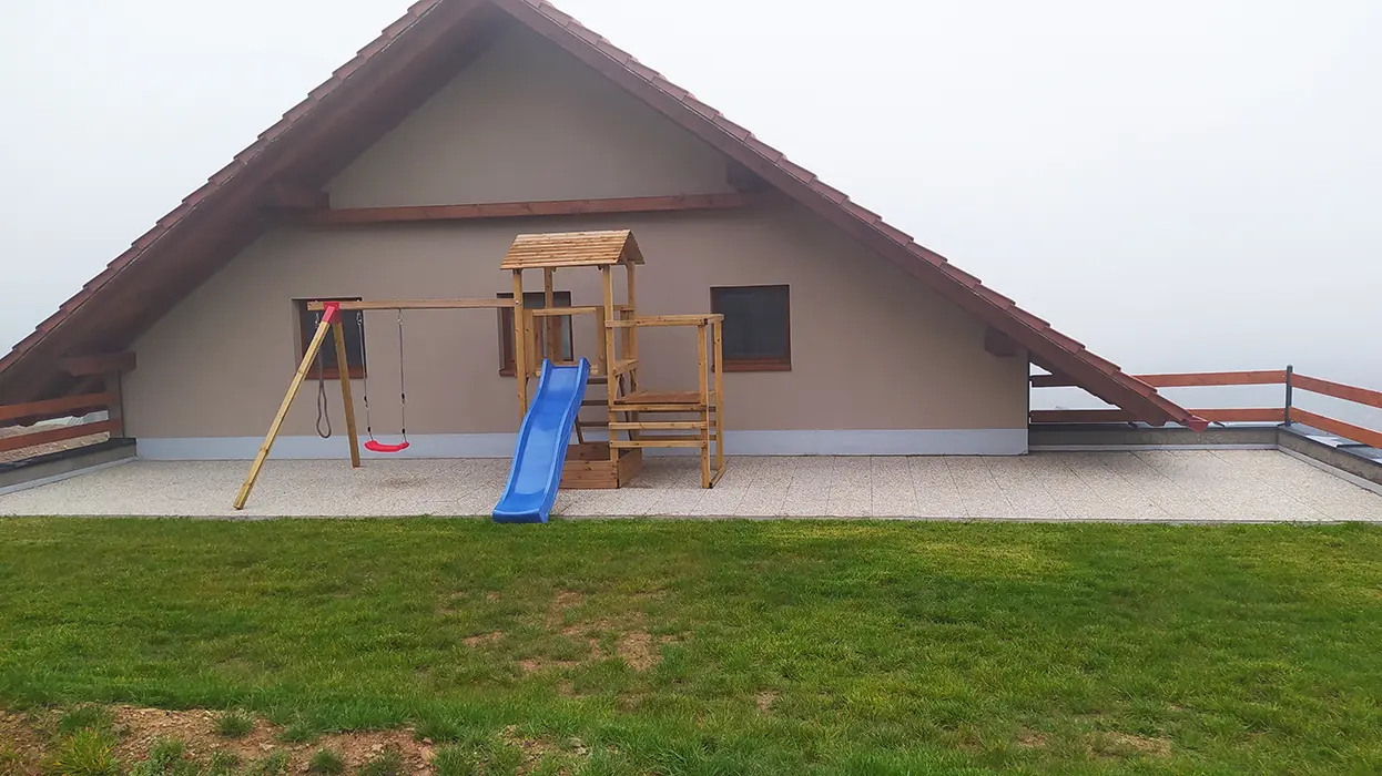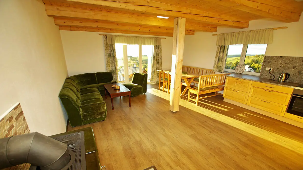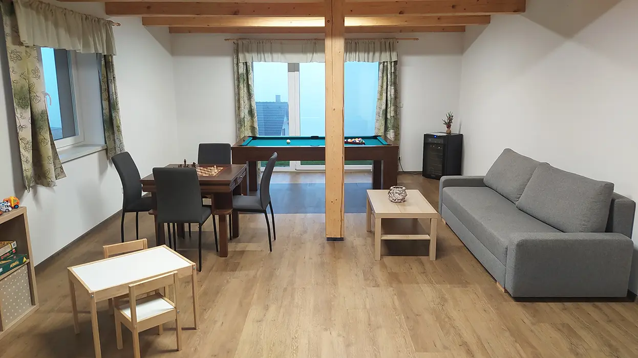 V přízemí - prostorná společenská místnost s posezením, LCDTV, krbová kamna + jídelní stůl a židle - spojená s kuchyní - el. sporák, varná deska, mikrovlnka, myčka, lednice, varná konvice, nádobí. Dále v přízemí - wellness centrum, herní místnost - stylový šachový a karetní stůl, kulečník a koutek pro děti - viz foto č. 15+16+17+18. V patře 4 ložnice - 2x3, 2x4 lůžka, k dispozici dětská postýlka. Soc. zařízení - 2x sprcha, 2x WC. Topení - tepelné čerpadlo, krbová kamna