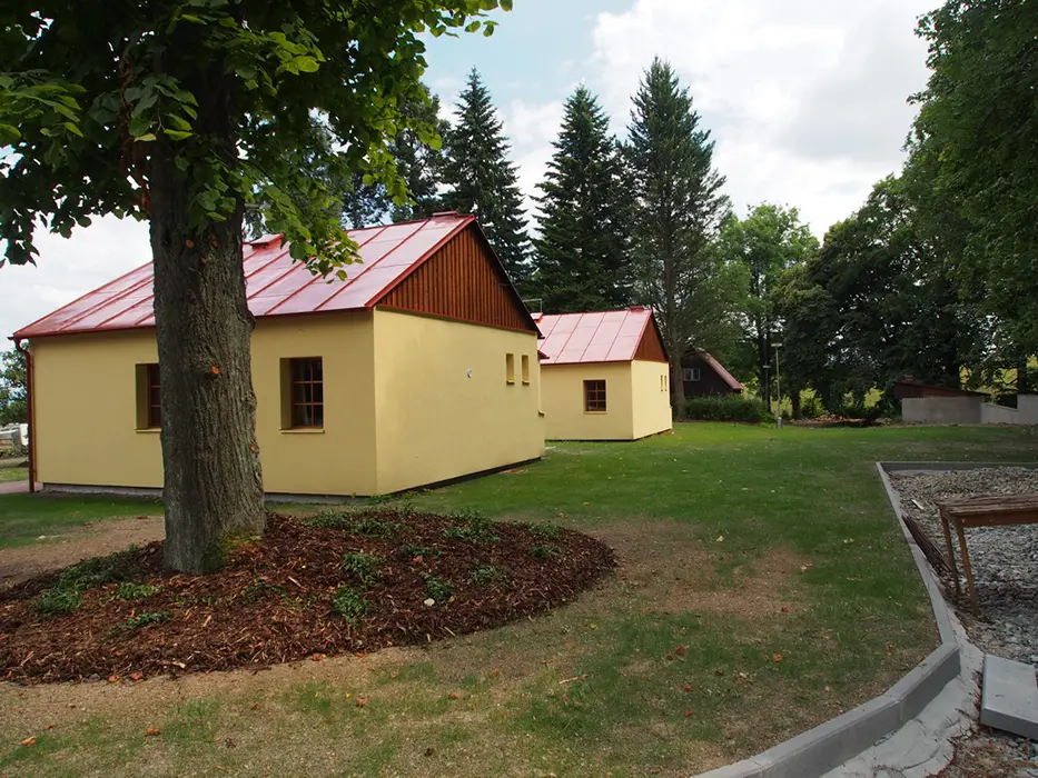 11 km Domažlice, v obci Česká Kubice, areál se 7 chatkami - 4x5 lůžkové, 3x4 lůžkové