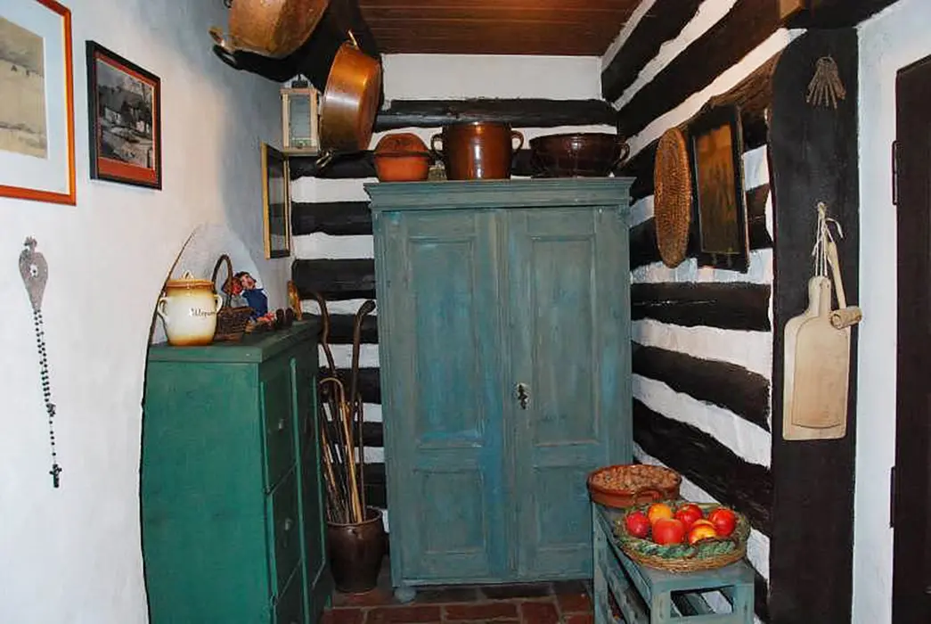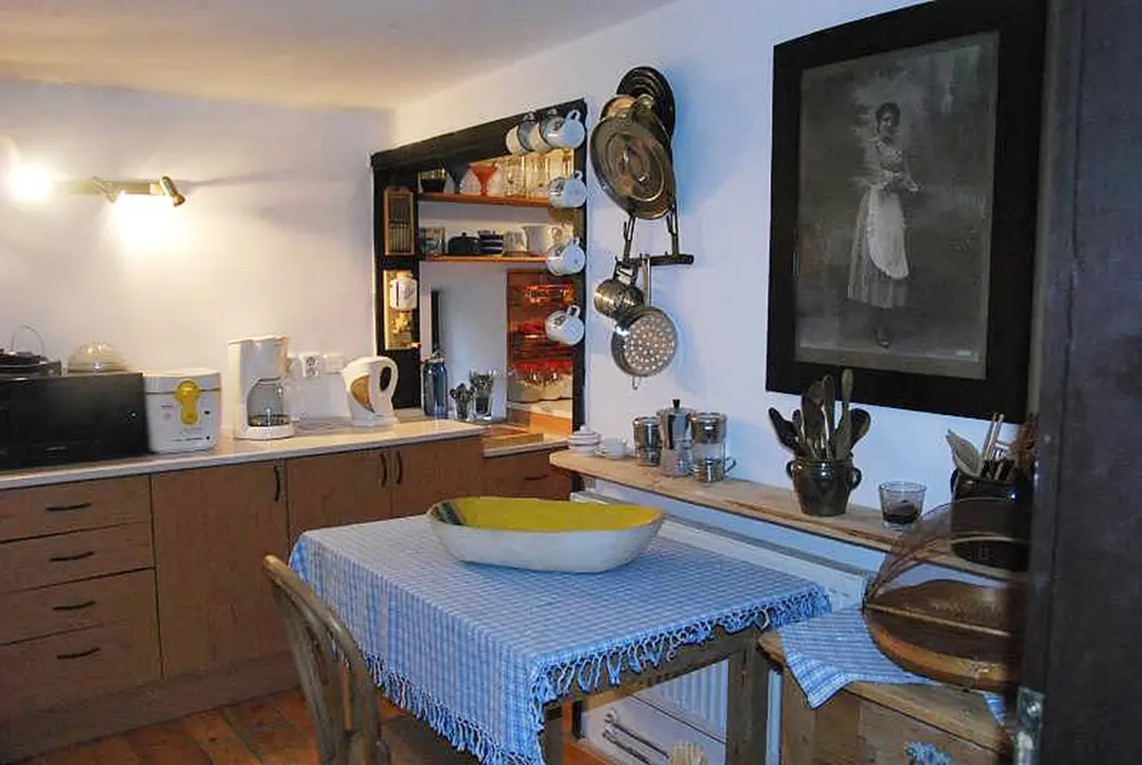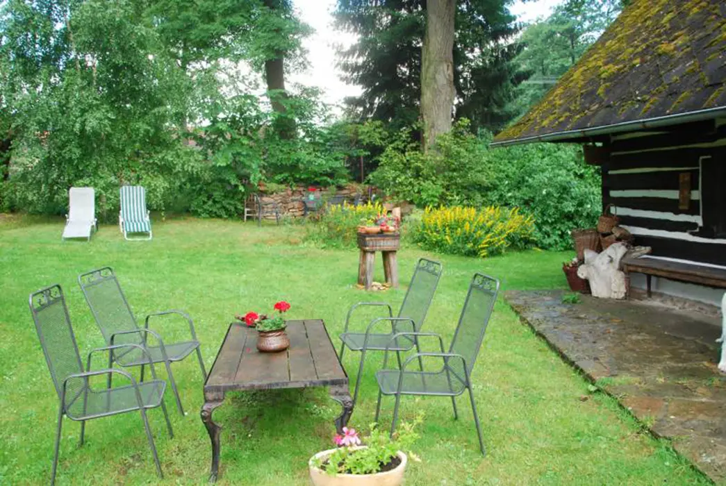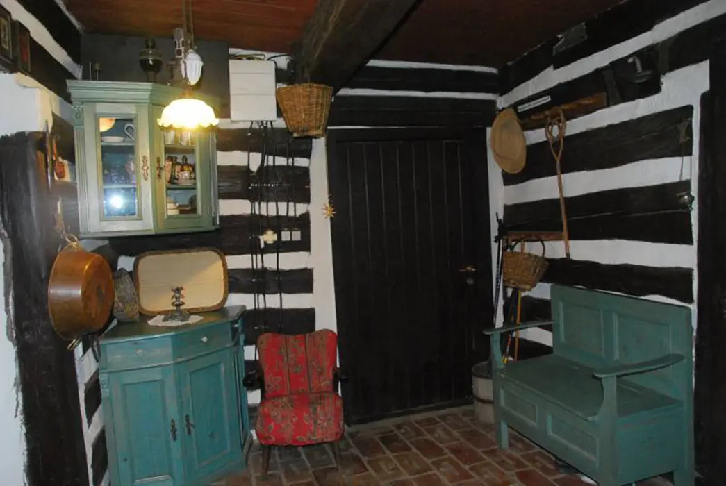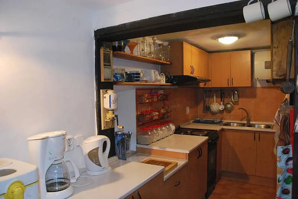 200 let stará roubenka po rekonstrukci - klasická světnice se spaním na peci - 1 lůžko, další 2 lůžka, kuchyně - jídelní stůl, lednice s mrazicím boxem, elektrický 4-plotýnkový sporák s el.troubou, plně vybavená kuchyňská linka, mikrovlnná trouba, el.robot, odšťavňovač, varná konvice, překapávač na kávu, žehlička. 1 ložnice 1x2 lůžka, k dispozici dětská postýlka a ohrádka. Sociální zařízení - koupelna s vanou a umyvadlem + WC v koupelně. Topení - kachlový sporák na dřevo, ložnice, kuchyně i koupelna jsou vytápěny radiátory elektrokotle.