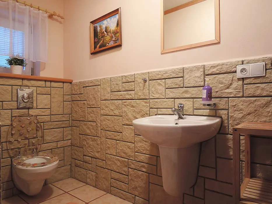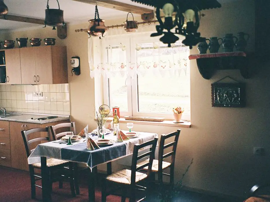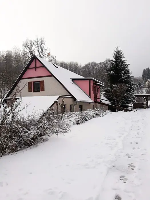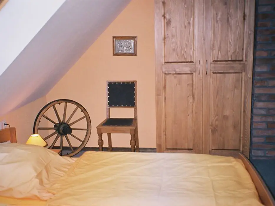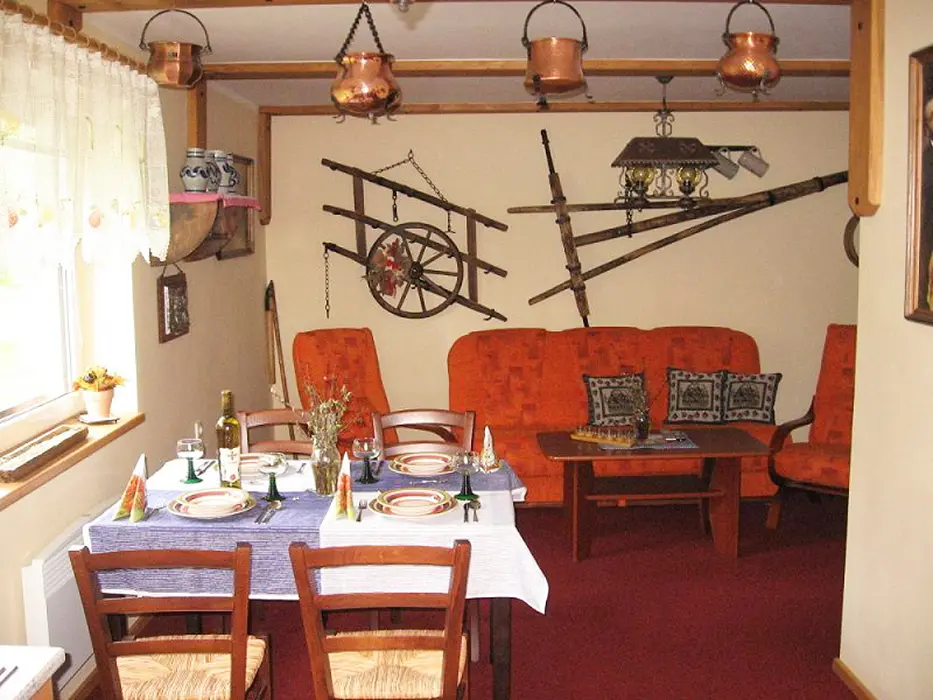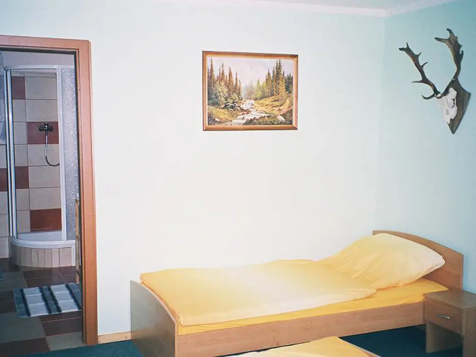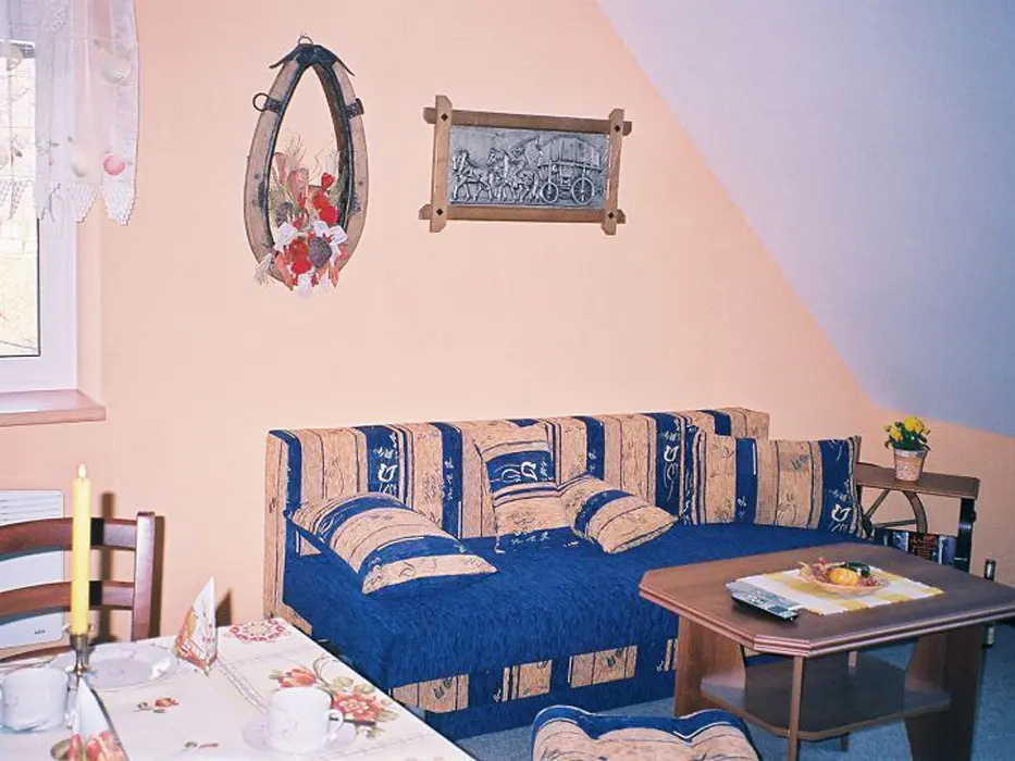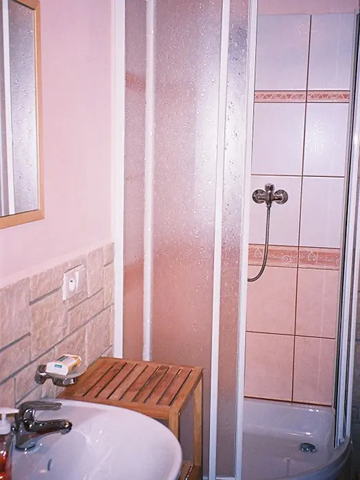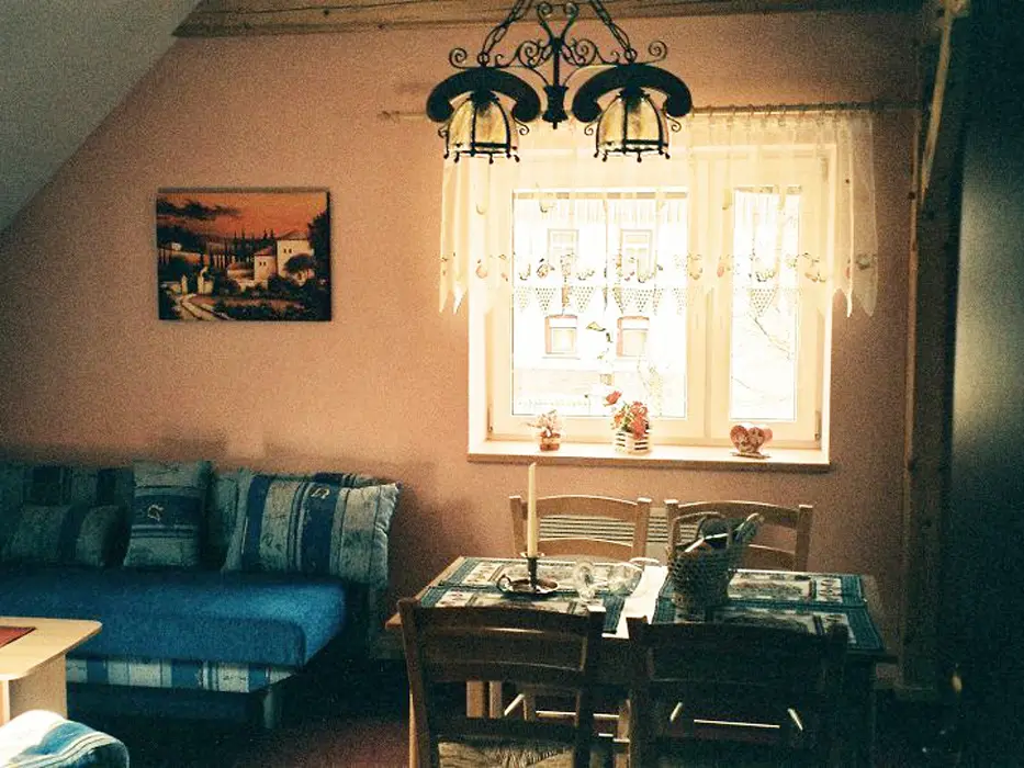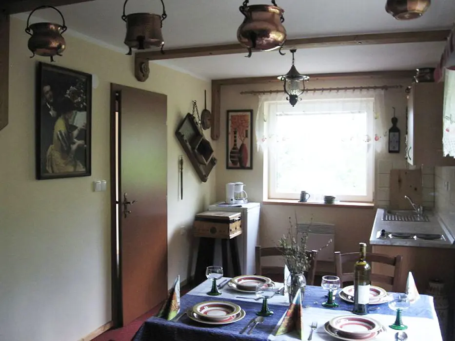 2 studia v podkroví - každé: kuchyňský a jídelní kout - el. vařič, malá trouba, mikrovlnka, varná konvice, lednice, nádobí, TV, SAT. 2 lůžka + rozkládací gauč pro 1 - 2 osoby. Soc. zařízení - koupelna se sprchovým koutem, umyvadlo, WC. Topení - el. přímotopy