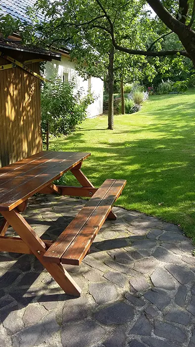 Venkovní posezení, koutek pro děti - houpačky, houpací síť, malé ohniště, bylinková zahrádka ( má certifikát přírodní zahrada bez používání chemie ), vnitřní bazén s protiproudem, infra sauna, na nově vybudovaném rybníce cca 10 minut chůze loďka k romantickým projížďkám k zapůjčení - využívání loďky je v ceně pobytu