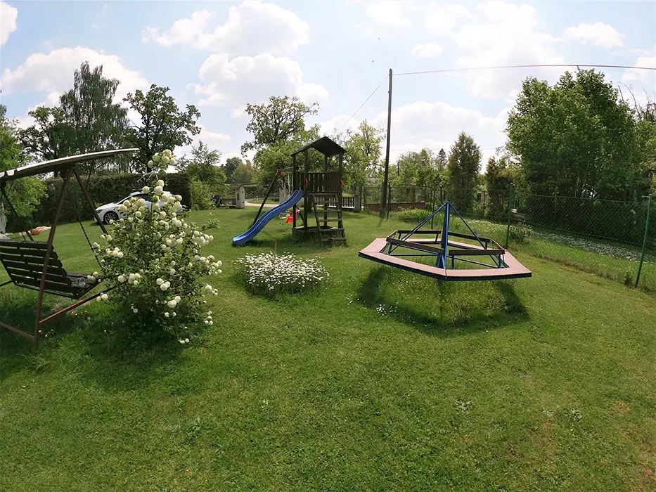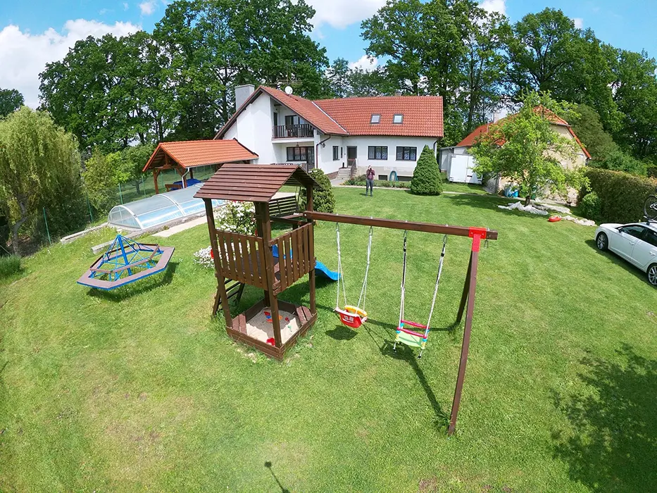 Kryté posezení, zahradní nábytek, venkovní gril, houpačky, pískoviště, zapuštěný a krytý bazén