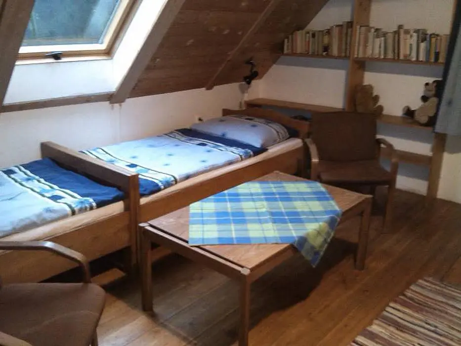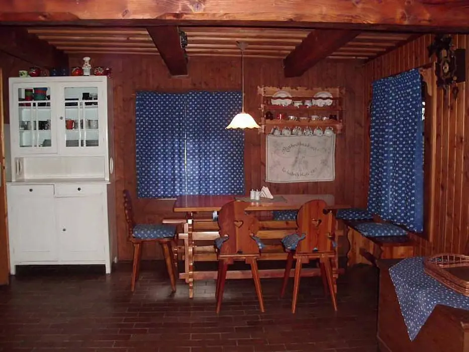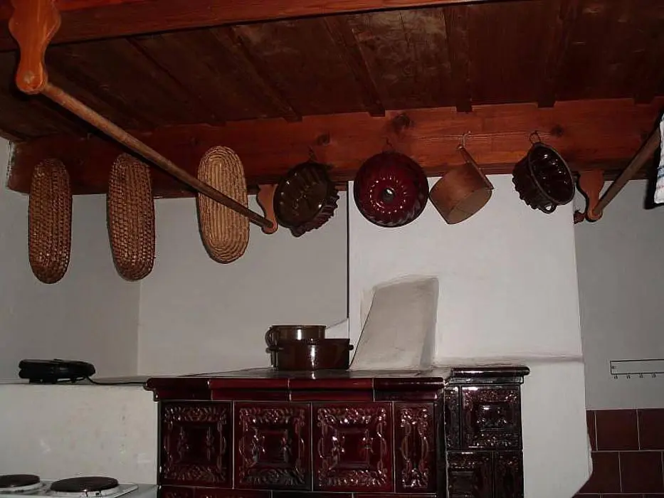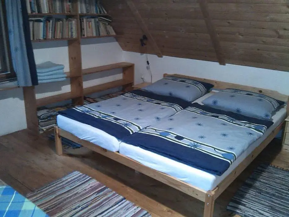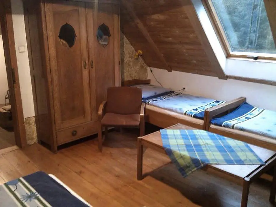 Vstupní prostorná chodba, kamenný sklep ( možnost uschování potravin a nápojů ), stylová valašská kuchyně - chlebová pec, velký dubový stůl, rozkládací pohovka - 2 lůžka, TV, vybavení kuchyně - sporák na dřevo, dvouplotýnkový vařič s el. troubou, toustovač, mikrovlnka, varná konvice, lednička a rádio. Za touto místností je další obývací pokoj - součástí je bar. V podkroví 2 ložnice 1x4, 1x6 lůžek + dětská postýlka. K ohřevu vody bojler 125 l. V objektu je pitná voda. Soc. zařízení - 1x koupelna s vanou, 2x WC. Topení - v kuchyni pec, v obývacím pokoji krb s rozvodem teplého vzduchu do ložnic v podkroví, v koupelně + WC + předsíni podlahové topení, el. přímotopy ve všech místnostech