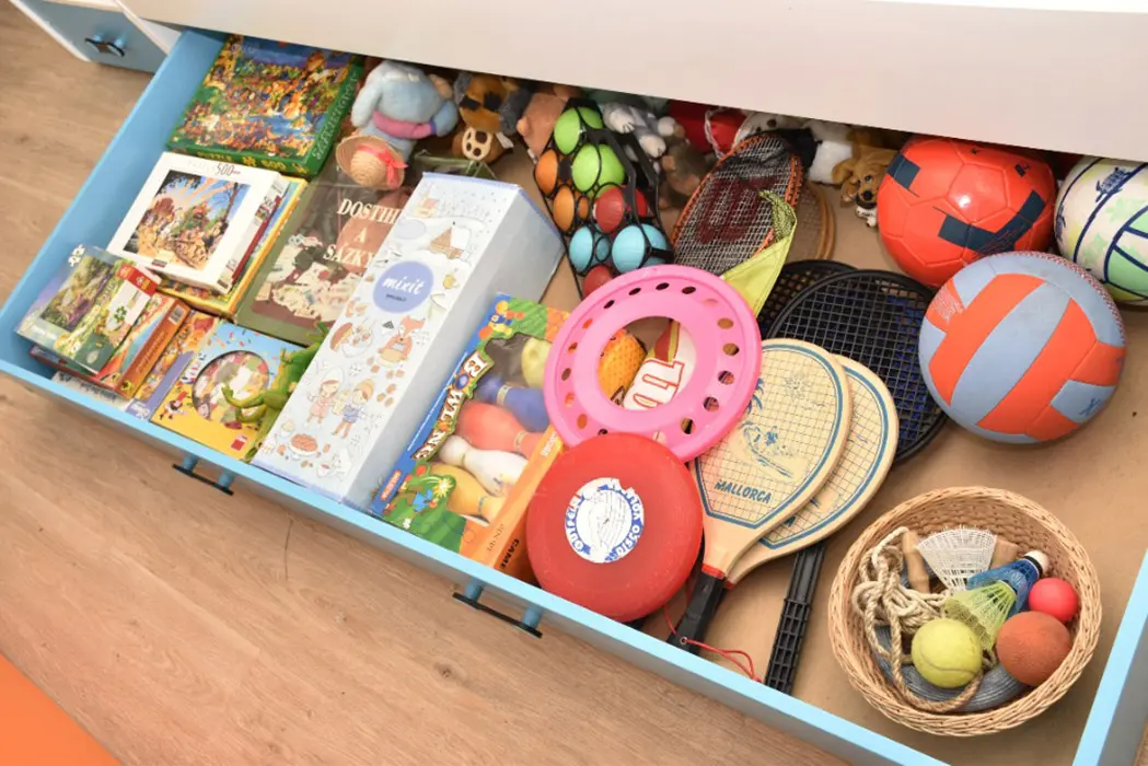 Posezení, plynový gril, houpačka, badminton, líný tenis, míče, petanque, houpačka a klouzačka pro děti do 3 let