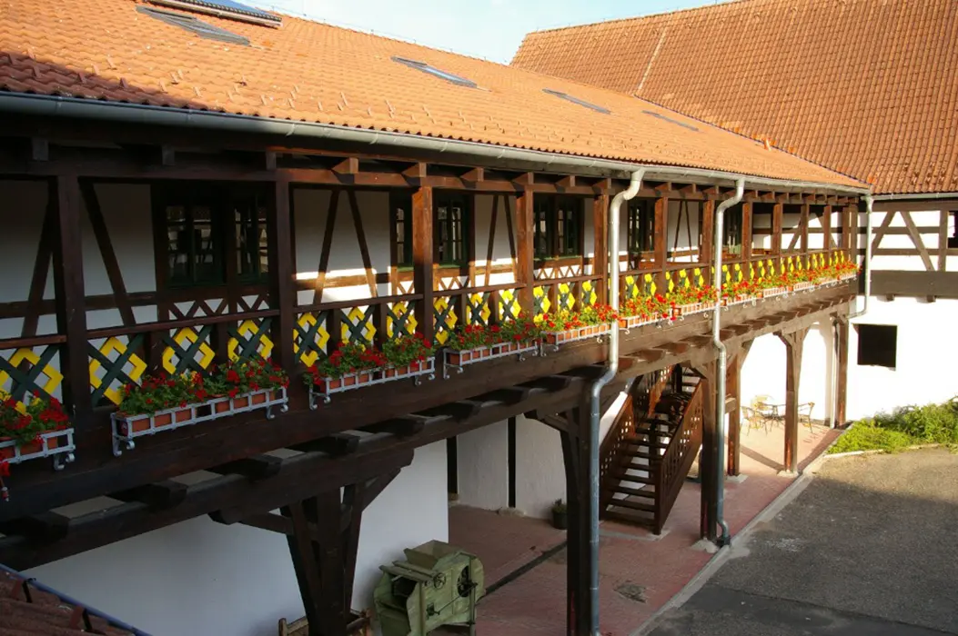 Posezení s možností grilování, opékání masa apod. K dispozici je vybavení pro venkovní sporty i společenské hry - ping-pongový stůl, soft-tenis, nebo na rozlehlé zpevněné ploše si mohou Vaše děti zajezdit na kole nebo třeba na kolečkových bruslích, aniž by se vystavovaly nebezpečí, že je něco přejede. Najdete zde malou kontaktní ZOO, kde si Vaše děti mohou pohrát s drobným hospodářským zvířectvem