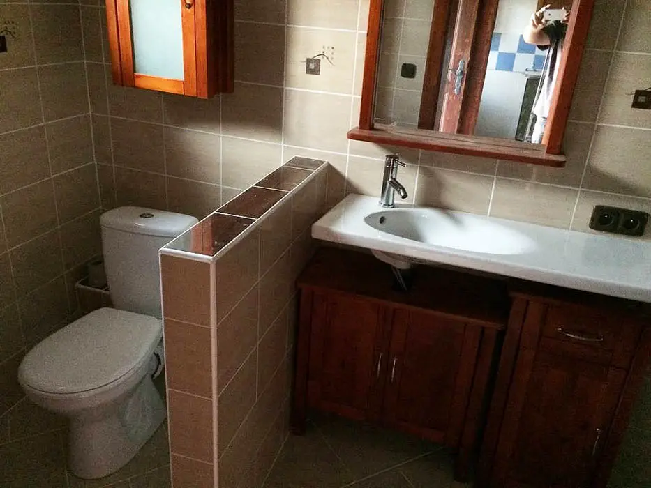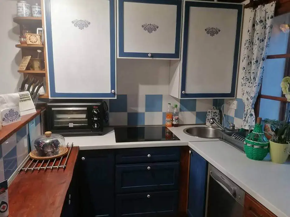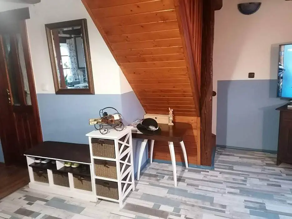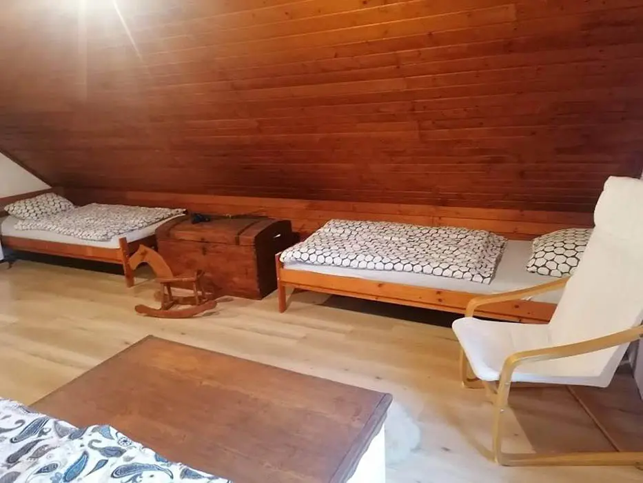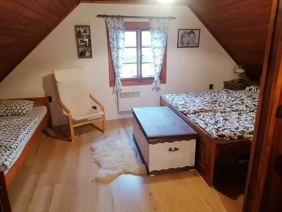 V přízemí obytná část s posezením ( 2 přistýlky ), TV, SAT, spojená s kuchyní - lednice, myčka, pračka, varná deska, nádobí, varná konvice, mikrovlnka, jídelní stůl a židle. V patře - 1 ložnice 1x4 lůžka. Soc. zařízení - sprchový kout + WC. Topení - el. přímotopy nebo krbová kamna. V objektu je klimatizace
