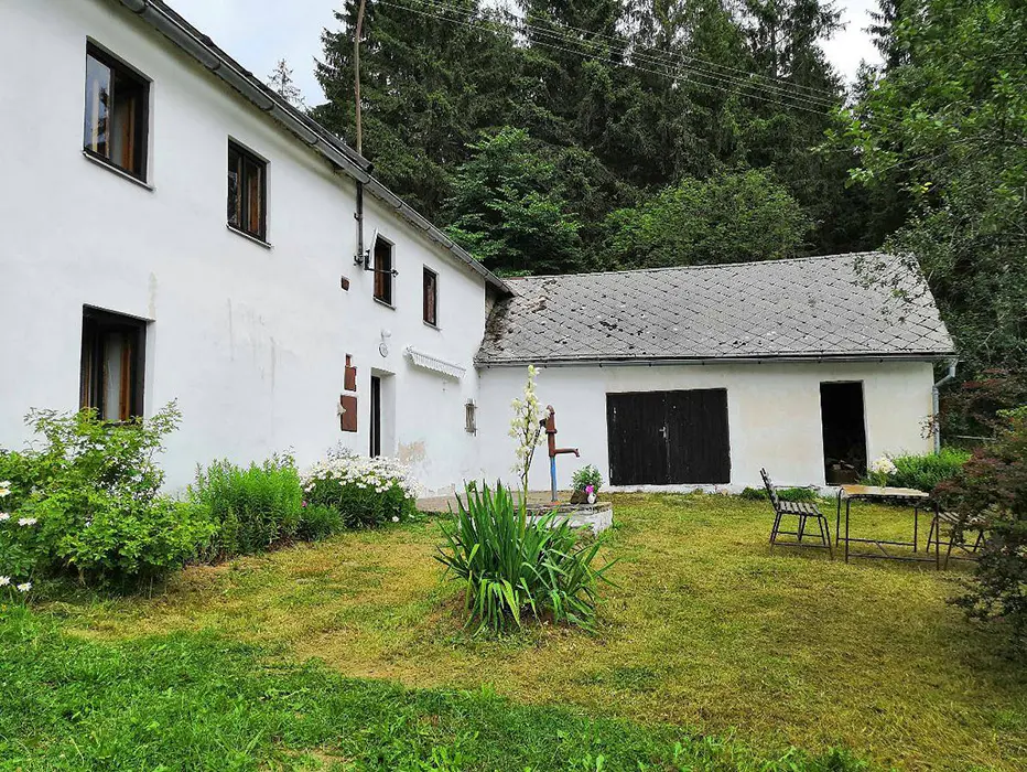 25 km Český Krumlov, 19 km Vyšší Brod, 10 km Lipno nad Vltavou, za obcí Frymburk - na polosamotě u lesa - cca 1,5 km od Lipna