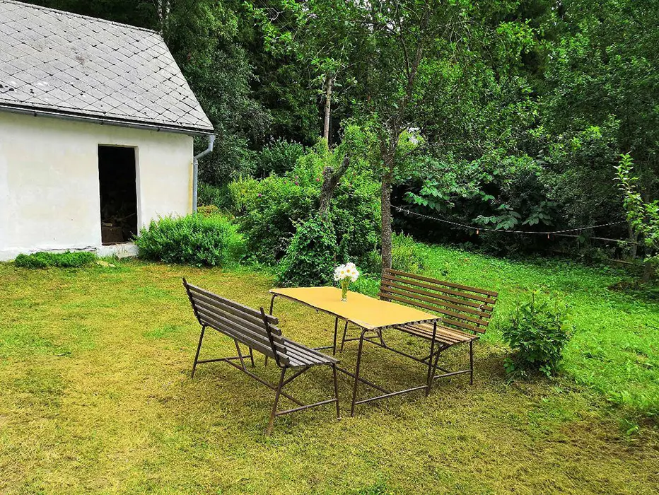 Velký pozemek 2000 m2, ohniště, posezení, les za chalupou