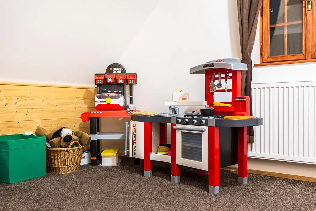 kostky, puzzle apod.), postýlky, šatní skříň, komoda. Sociální zařízení - nachází se v přízemí