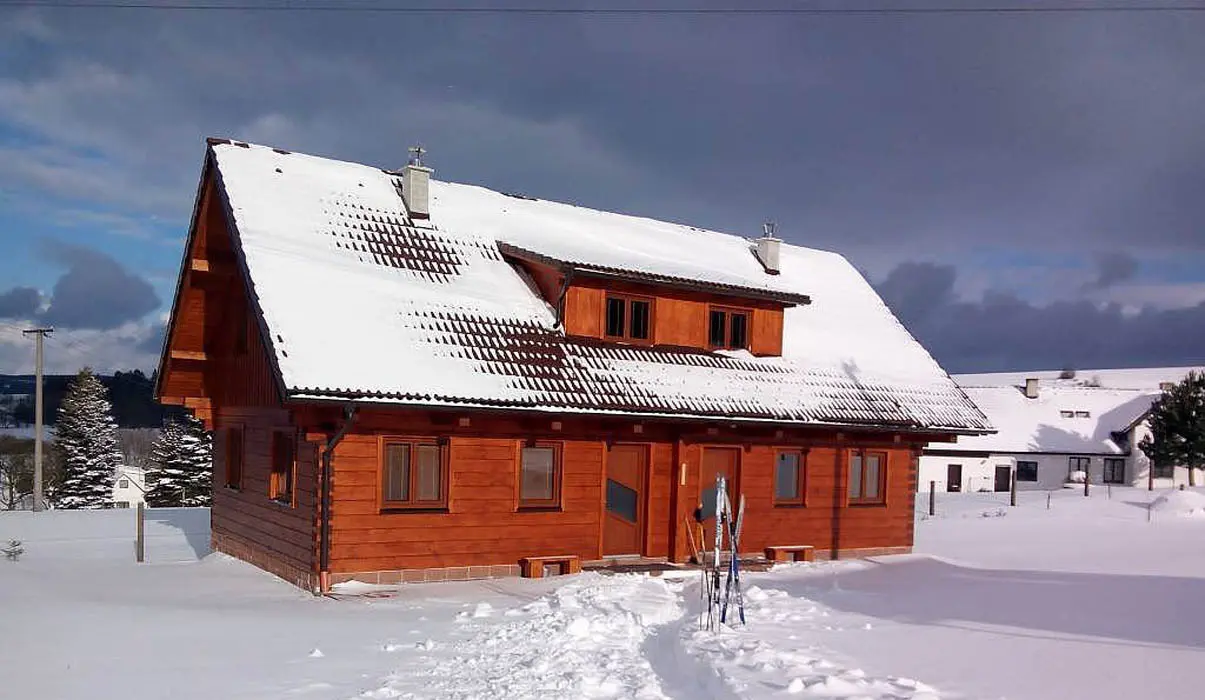 Upravené běžecké stopy 100 m od chaty, sjezdové lyžování Hlinsko,