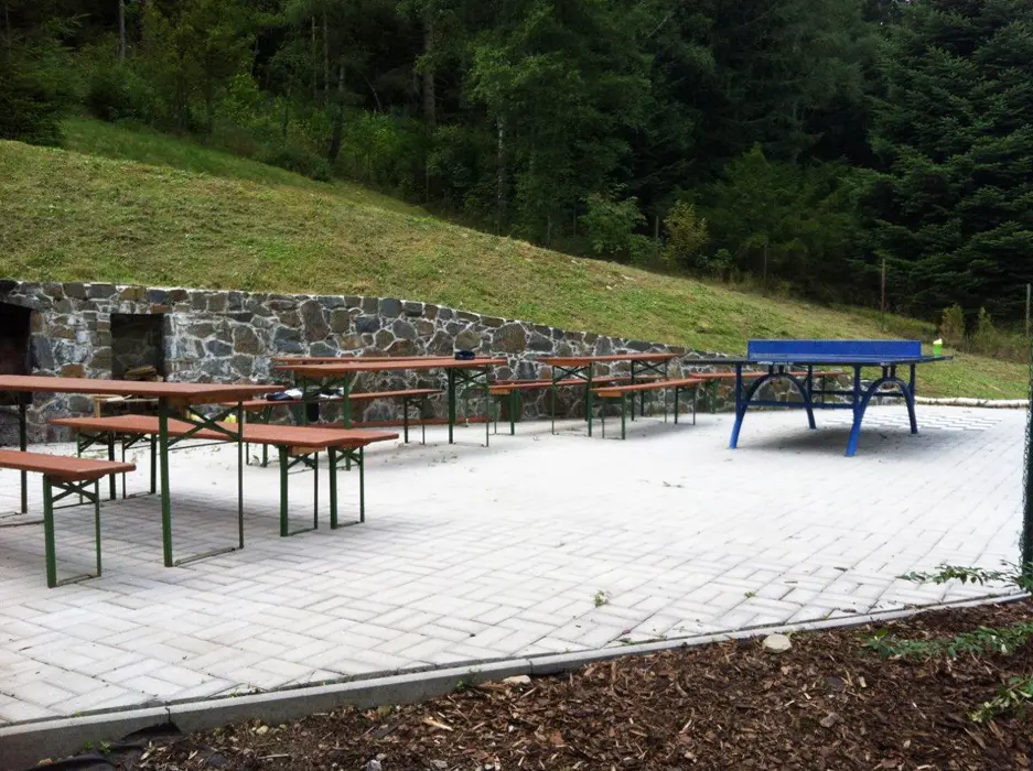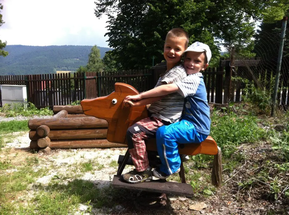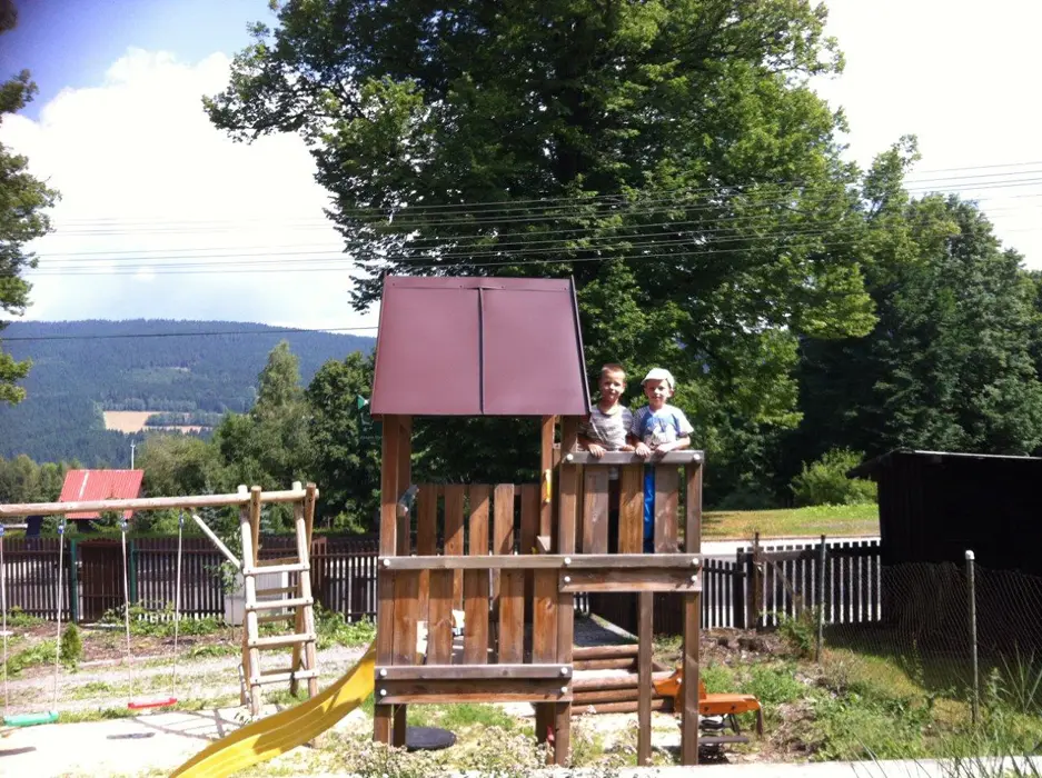 Houpačky, prolézačky pro děti, stoly a lavice, gril