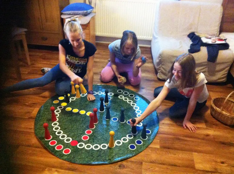 VIZ FOTO 4 + 5 + 6 - společenská místnost se sedací soupravou, LCD TV, SAT, DVD, rádio, stoly a židle, krbová kamna. Společná kuchyně pro hosty žlutého, červeného, oranžového a zeleného apartmánu – 2 x plyn. varná deska, myčka na nádobí, varná konvice, MVT, lednice s mrazákem, základní nádobí. Topení centrální