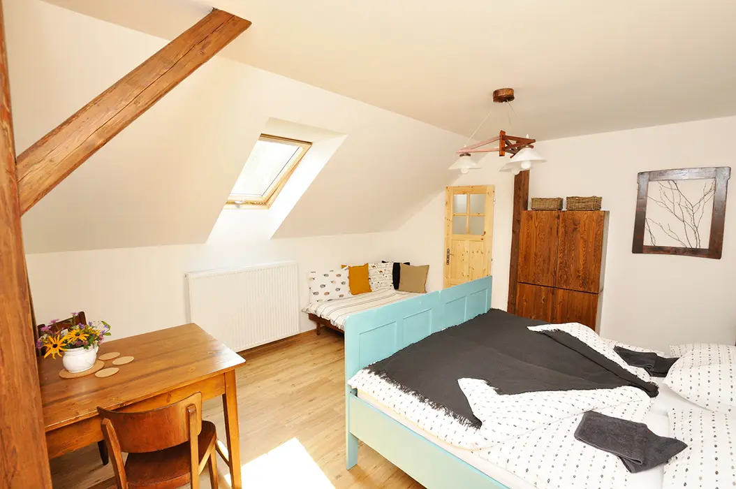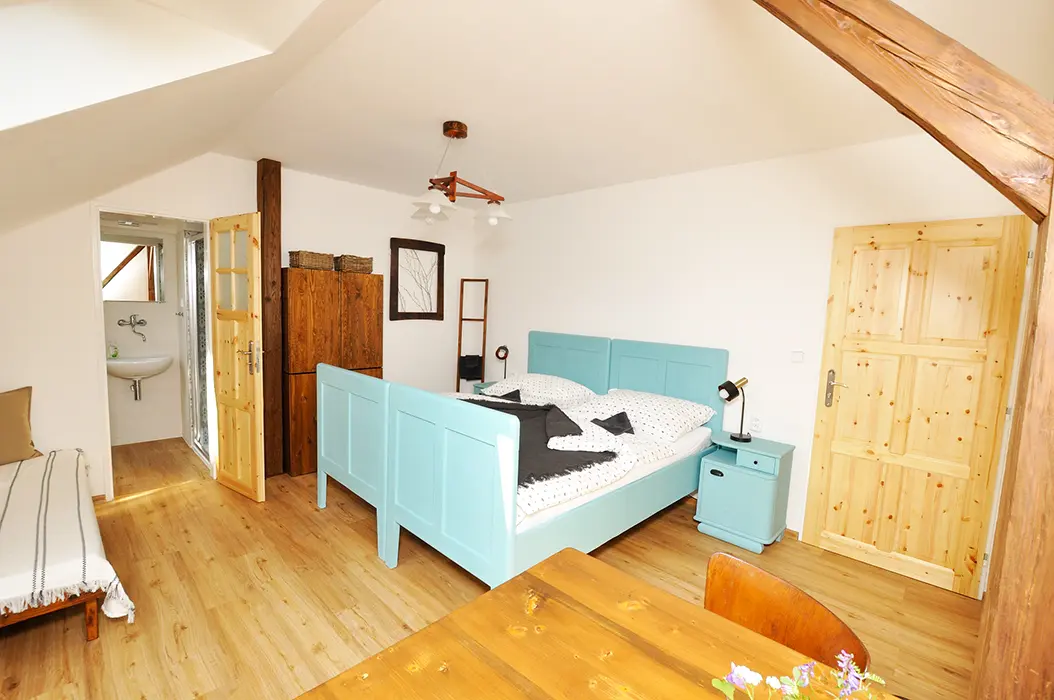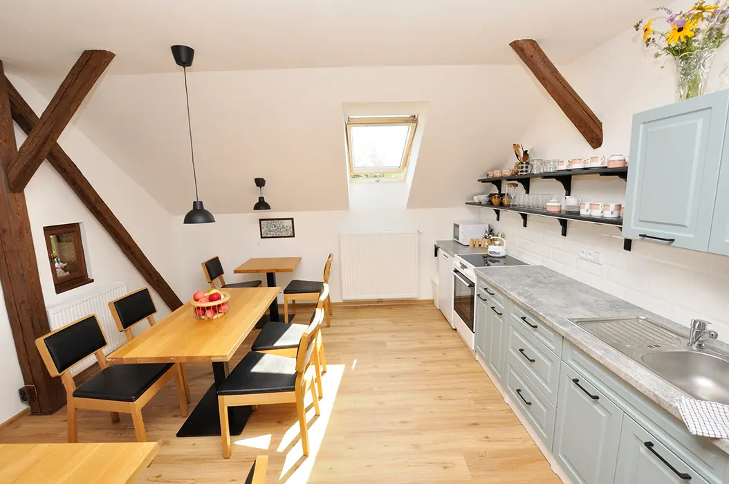13 km hrad Trosky, 12 km Jičín, 9 km Rovensko pod Troskami, v malé klidné obci Holenice - v jedné části domu trvale bydlí majitel, hosté mají samostatný vstup
