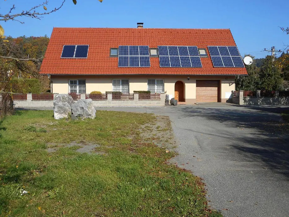 17 km Blansko, v obci Holštejn, dům je řešen jako 2 apartmány - každý má samostatný vchod