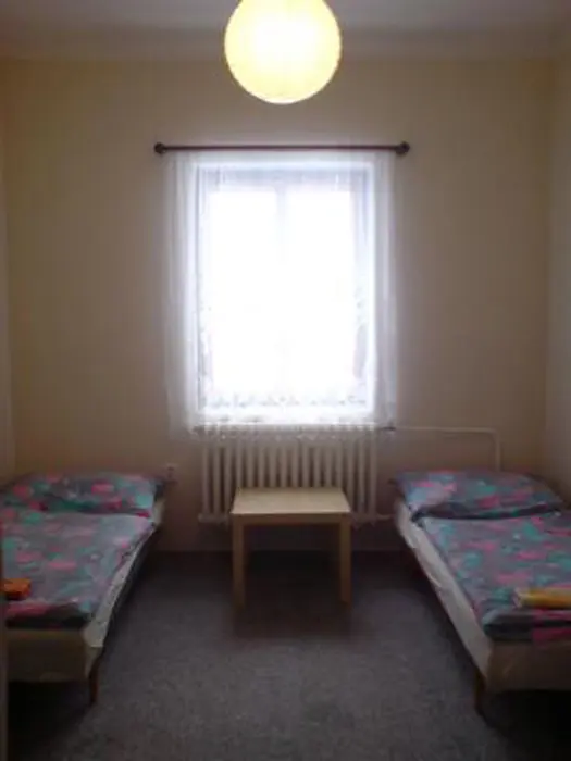 Menší společenská místnost se stoly a židlemi, šipky, stolní fotbal, lezecká ministěna, v celém objektu je ústřední topení, mikrovlnka společná