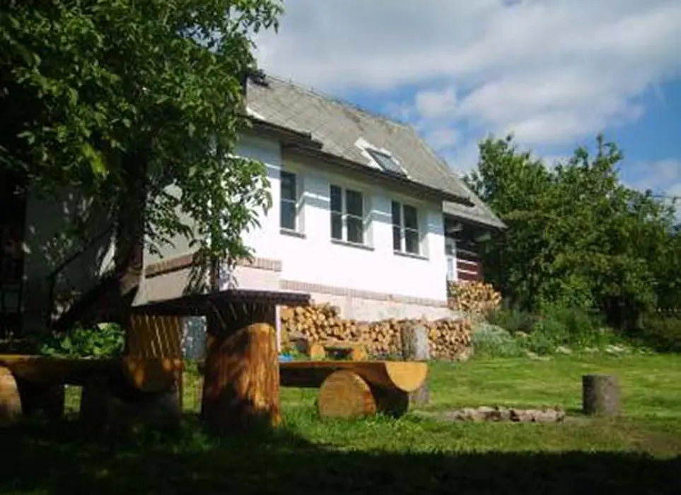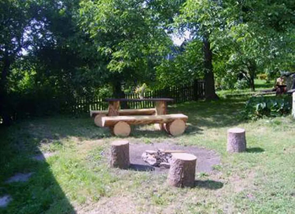 Posezení u ohniště, k dispozici gril, na zápraží dětská houpačka, prostorná zahrada