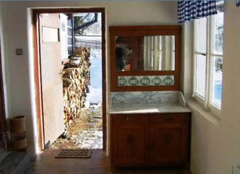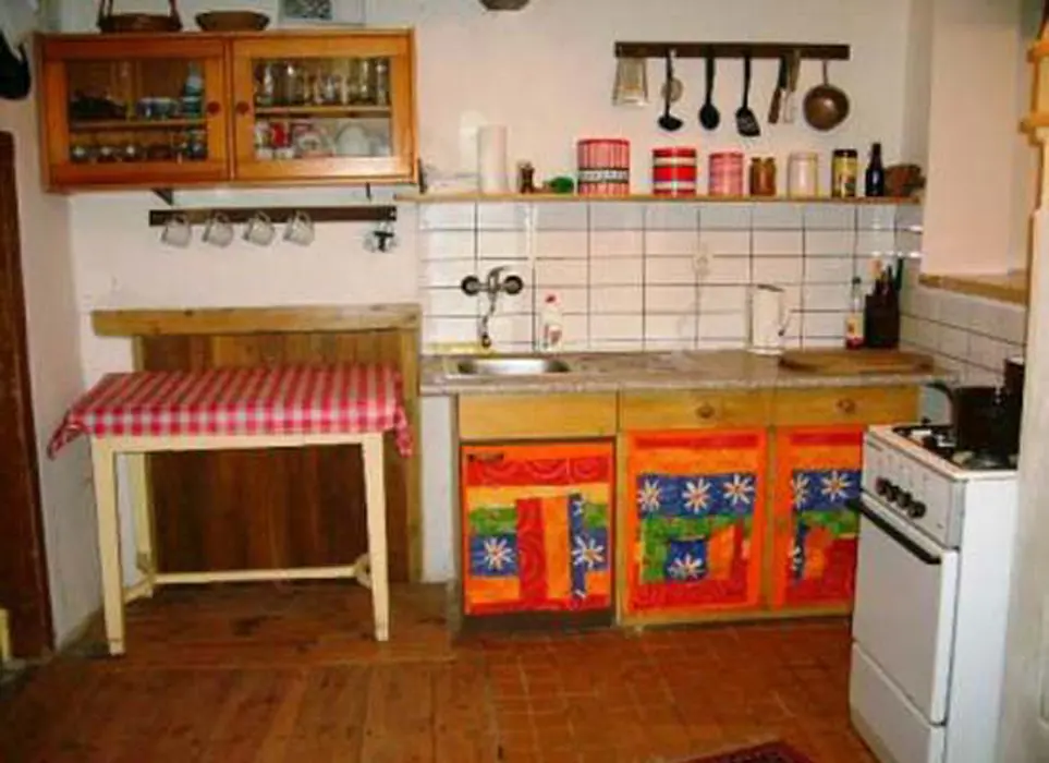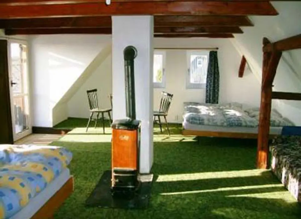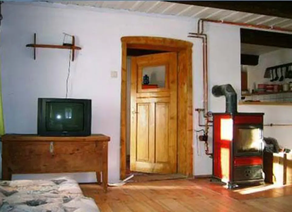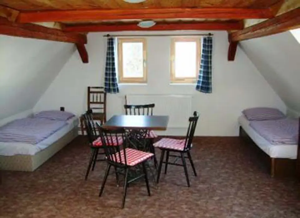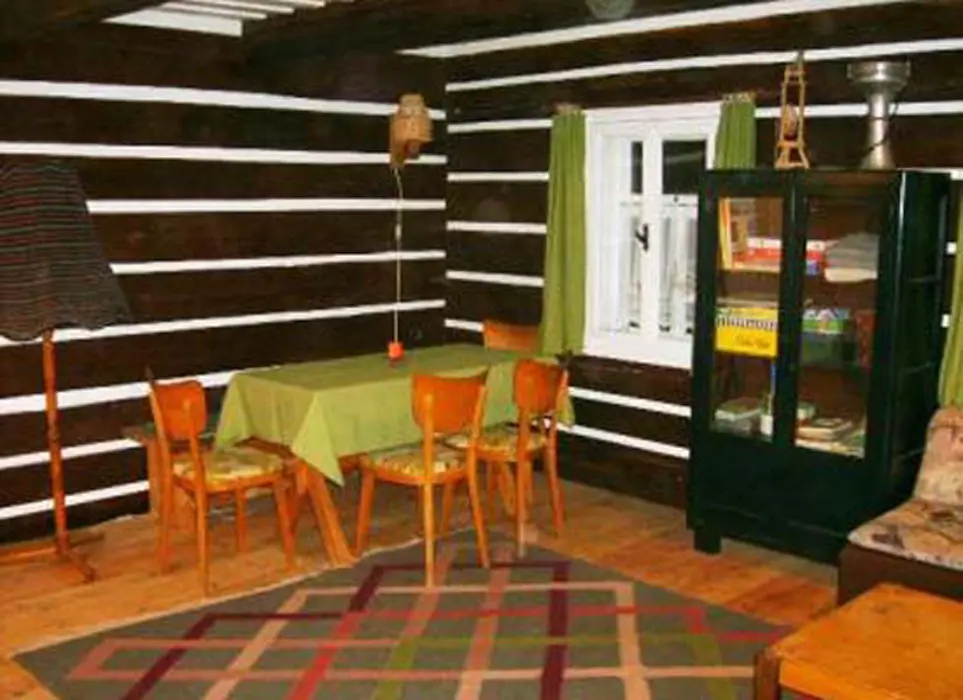 Společenská místnost s posezením u krbových kamen, BTV, DVD, set top box, rádio a společenské hry. Vybavená kuchyňka s jídelním koutem - lednice, kombinovaný sporák, MVT, varná konvice a základní nádobí. V patře jsou 3 ložnice 1x4 a 2x3 lůžka, jedna 3 lůžková ložnice je průchozí. Koupelna s vanou, WC. Topení centrálním rozvodem krbovými kamny.
