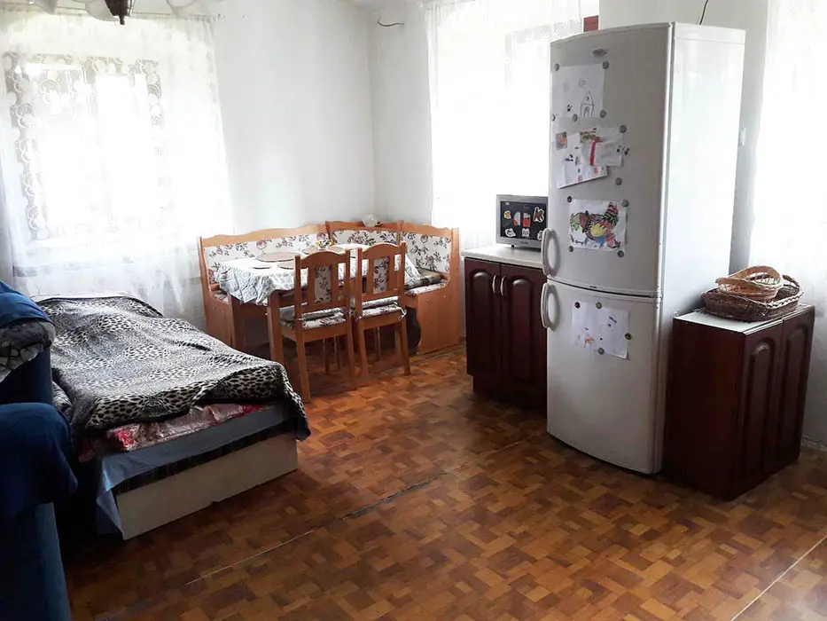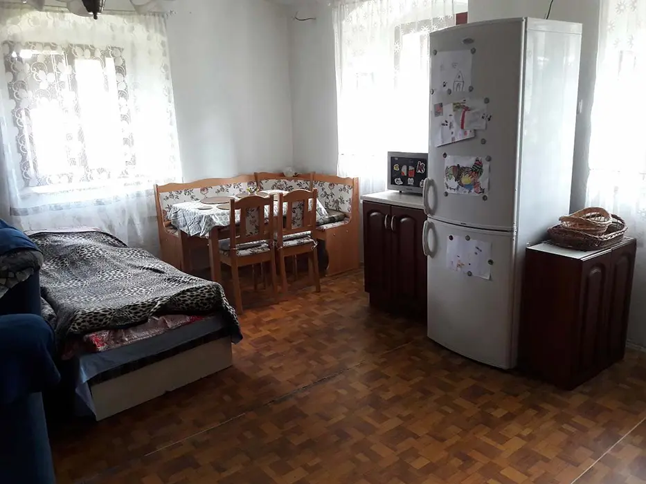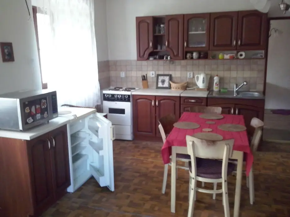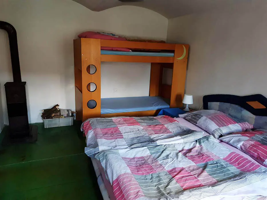 Obývací pokoj s posezením ( možnost 2 přistýlek ) spojený s kuchyní. Kuchyně - jídelní stůl, kuchyňská linka, el.sporák s troubou, mikrovlnná trouba, rychlovarná konvice, překapávač na kávu. 2 ložnice - 2x2 lůžka - manželská postel, po domluvě možná dětská postýlka. Sociální zařízení - koupelna s vanou, umyvadlem, 2x WC, pračka. Topení - dřevem, v zimě i uhlím.