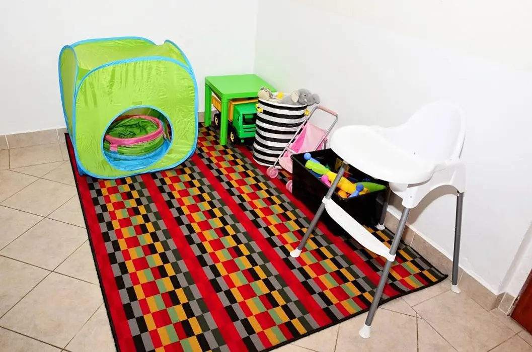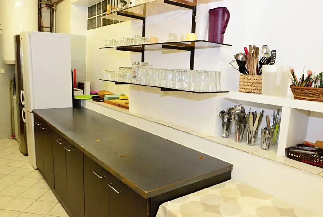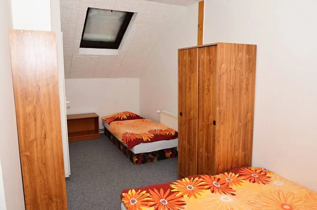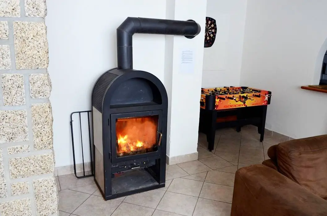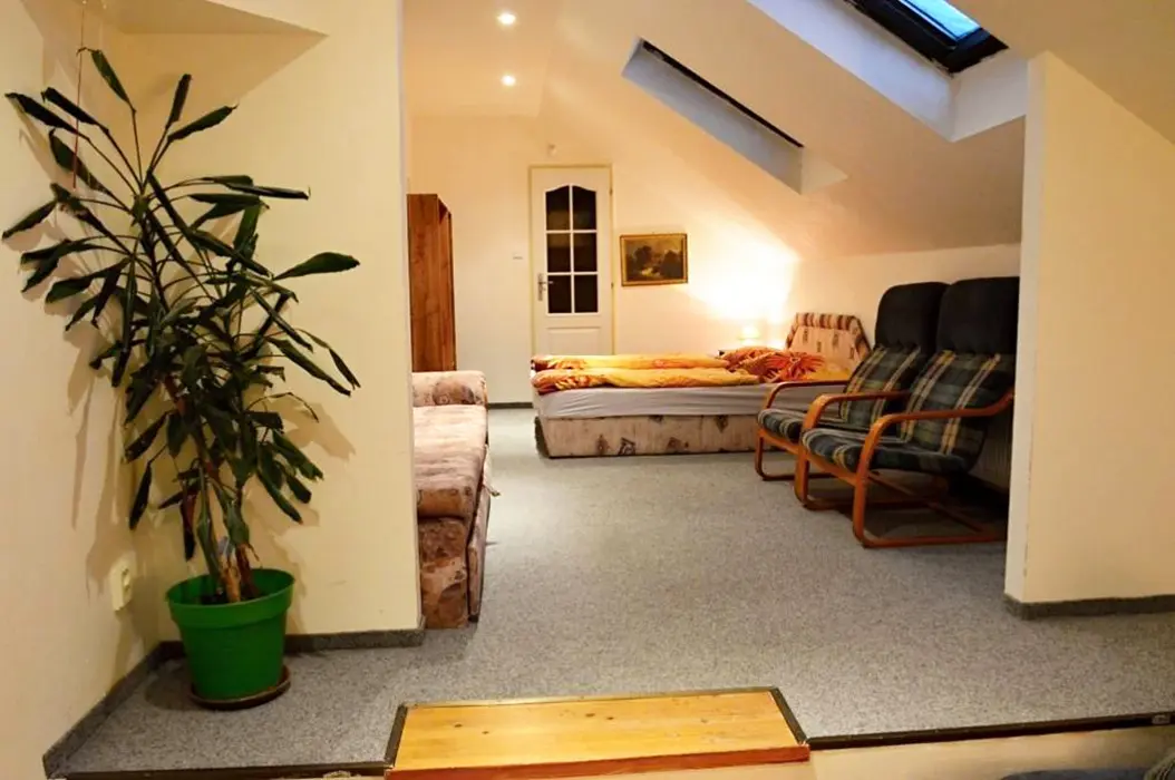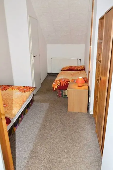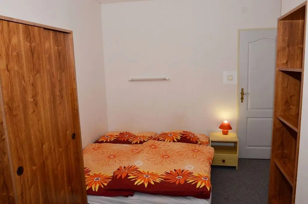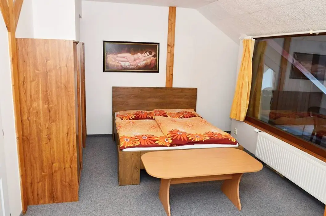 V přízemí plně vybavená kuchyně (3x lednice s mrazákem, 2x plynový sporák, trouba, 2x varná konvice, myčka, mikrovlnná trouba, pračka, bar s výčepním zařízením, kuchyňské vybavení), společenská místnost (krbová kamna, sedací souprava, TV, DVD přehrávač, minivěž, kulečník, šipky, fotbálek, dětský koutek). K dispozici je 6 ložnic - 4x3, 1x2 + 4 přistýlky, 1x2 + 2 přistýlky, každá s vlastním sociálním zařízením ( sprcha + WC ). K dispozici 2x dětská cestovní postýlka. Centrální vytápění + krbová kamna