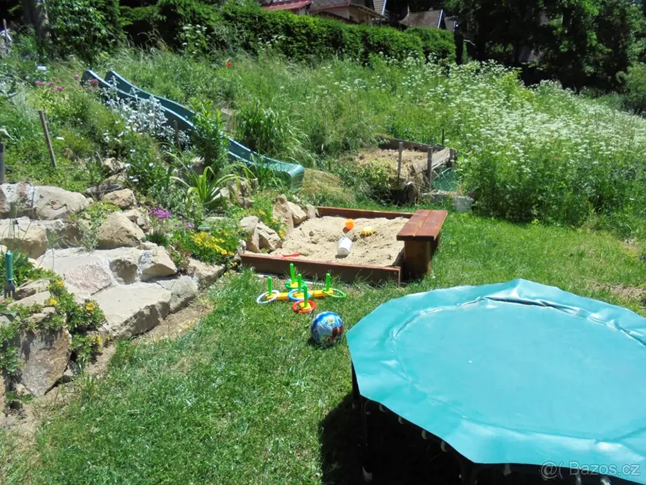 Venkovní posezení u ohniště, gril, pro děti - houpačka, trampolína, klouzačka, v suterénu - uzamykatelný sklep - možnost uschování kol