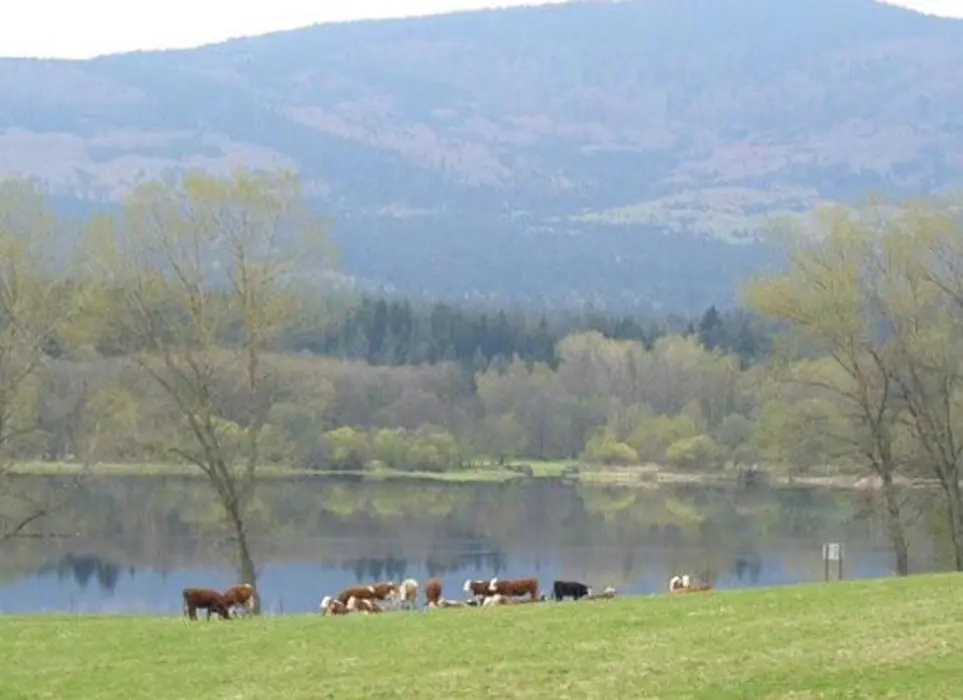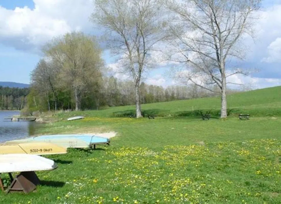 4 km Horní Planá, v chatové osadě v obci Hory u Perneku, asi 100 m od břehu Lipna
