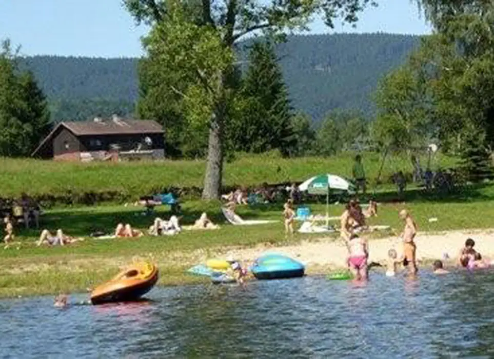 100 m Lipno - pláž s houpačkami, hřiště, trávník, písek