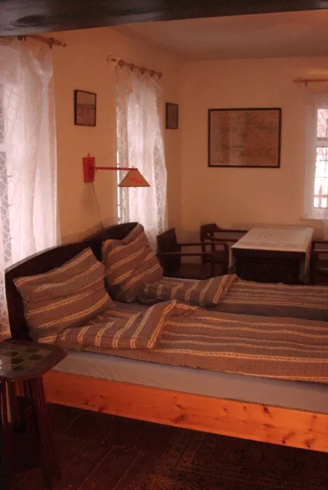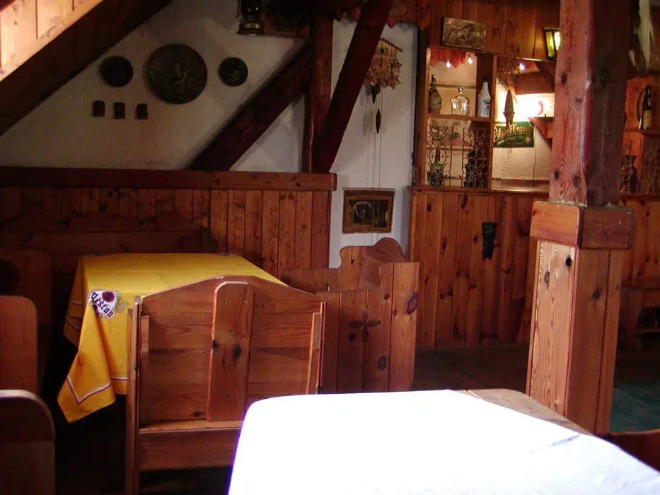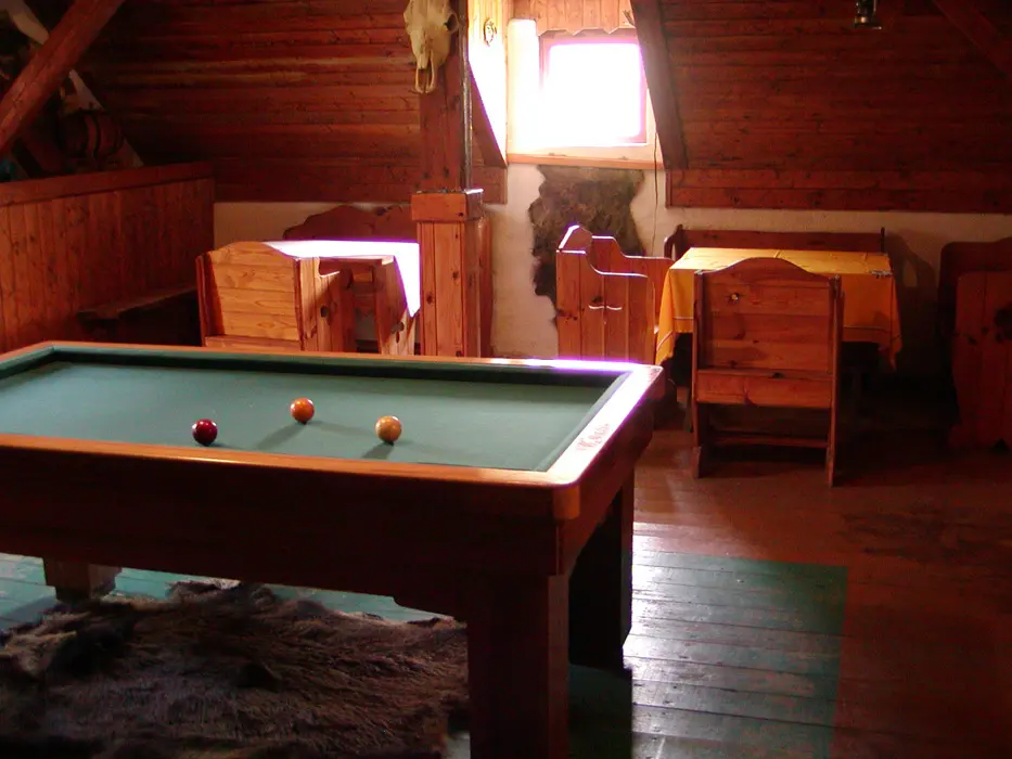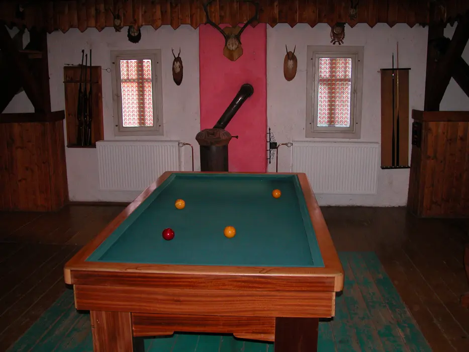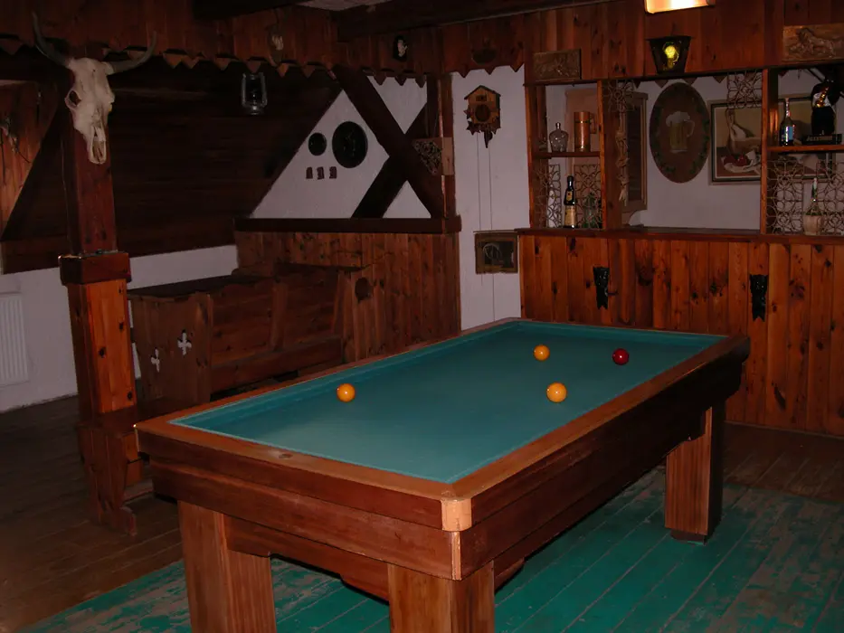 Velká společenská místnost s posezením TV, bare, kulečník. Samostatná kuchyně - plyn. sporák, mikrovlnka, varná konvice, překapávač, lednice,