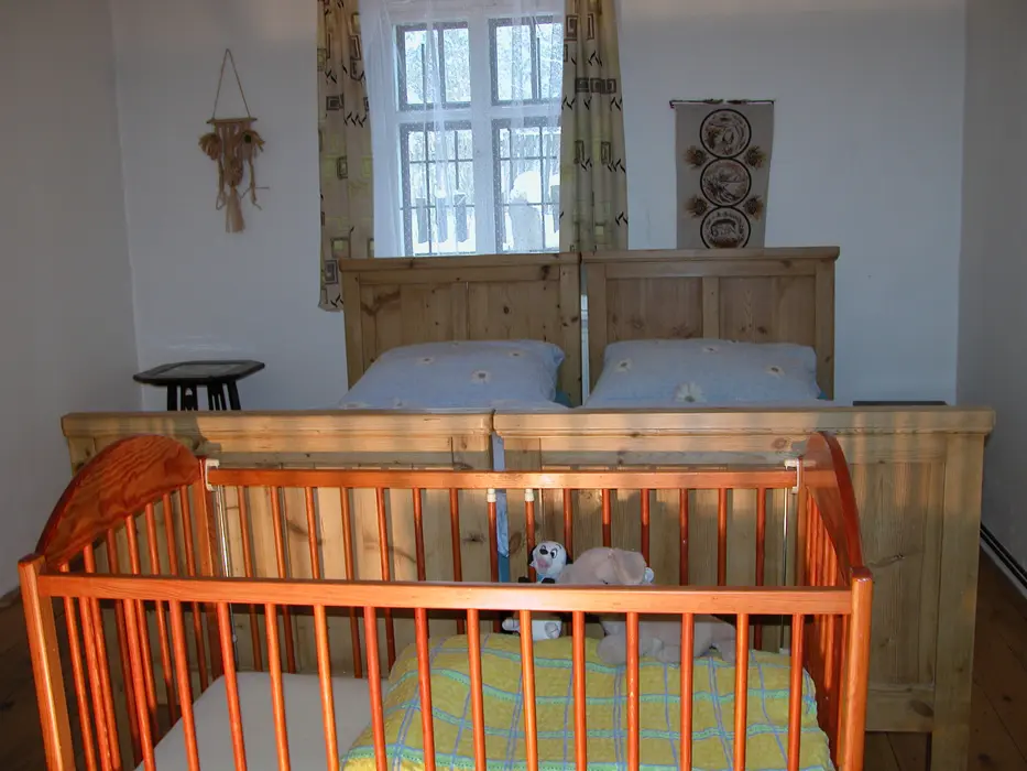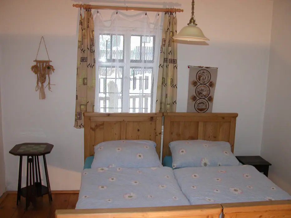 myčka na nádobí a základní nádobí. 4 ložnice - přízemí 2x2, patro 2x3 lůžka + dětská postýlka. Koupelna s vanou, WC, k dispozici pračka. Topení - centrální