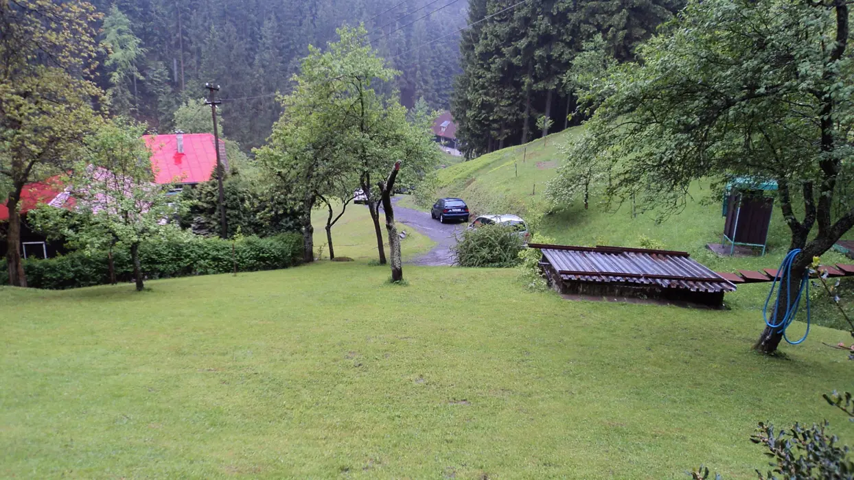 V létě u chaty, v zimě cca 250 m od objektu