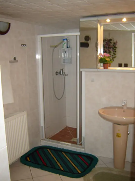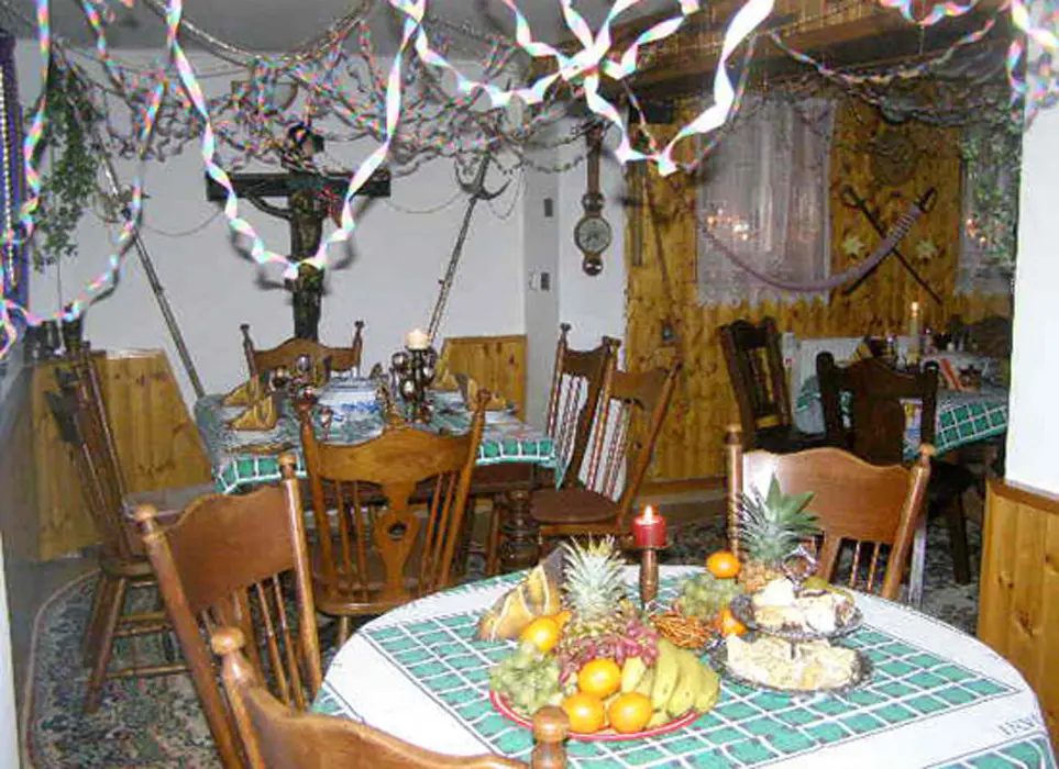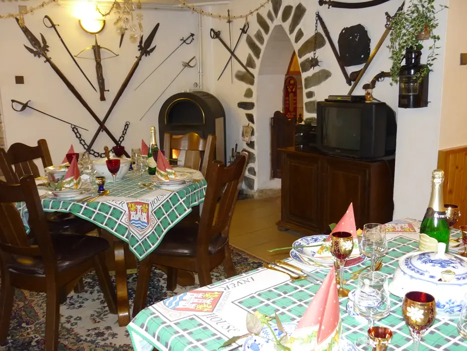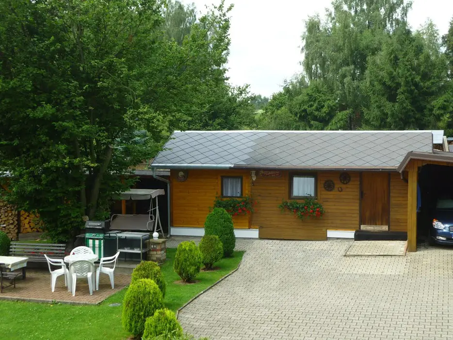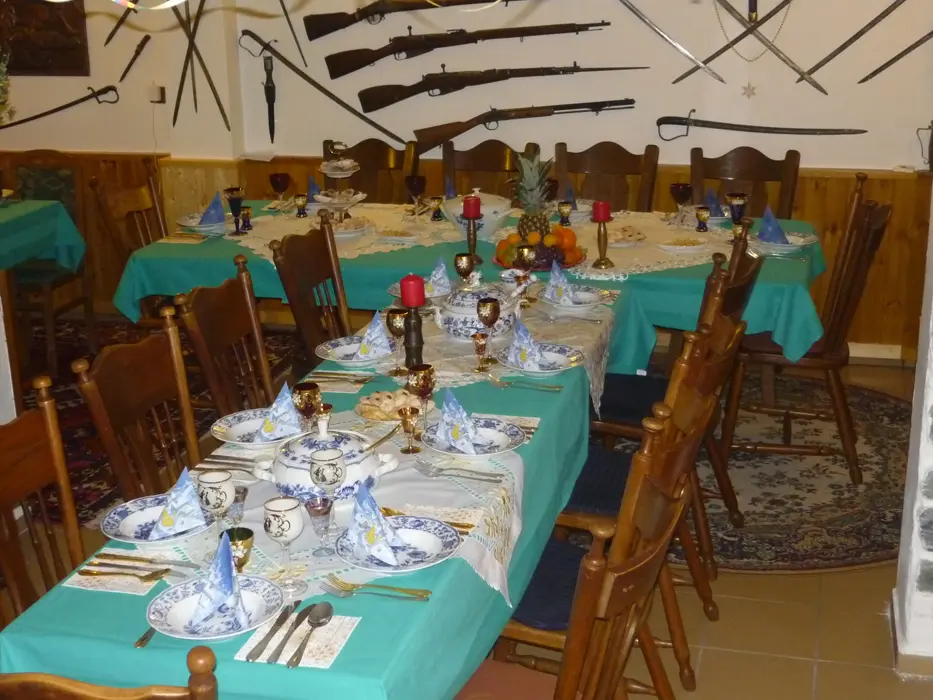 Restaurace s obsluhou – pouze pro ubytované klienty s domácí kuchyní, společenská místnost s posezením, krbová kamna, BTV. 4 pokoje 1x3, 1x4 lůžka - vlastní soc. zařízení ( sprcha + WC ), 2x3 lůžka - soc. zařízení společné ( sprcha + WC ). Topení elektrické + krbová kamna. Další možnost ubytování v bungalovu - je součástí penzionu - 1x2 lůžka + vl. soc. zař.