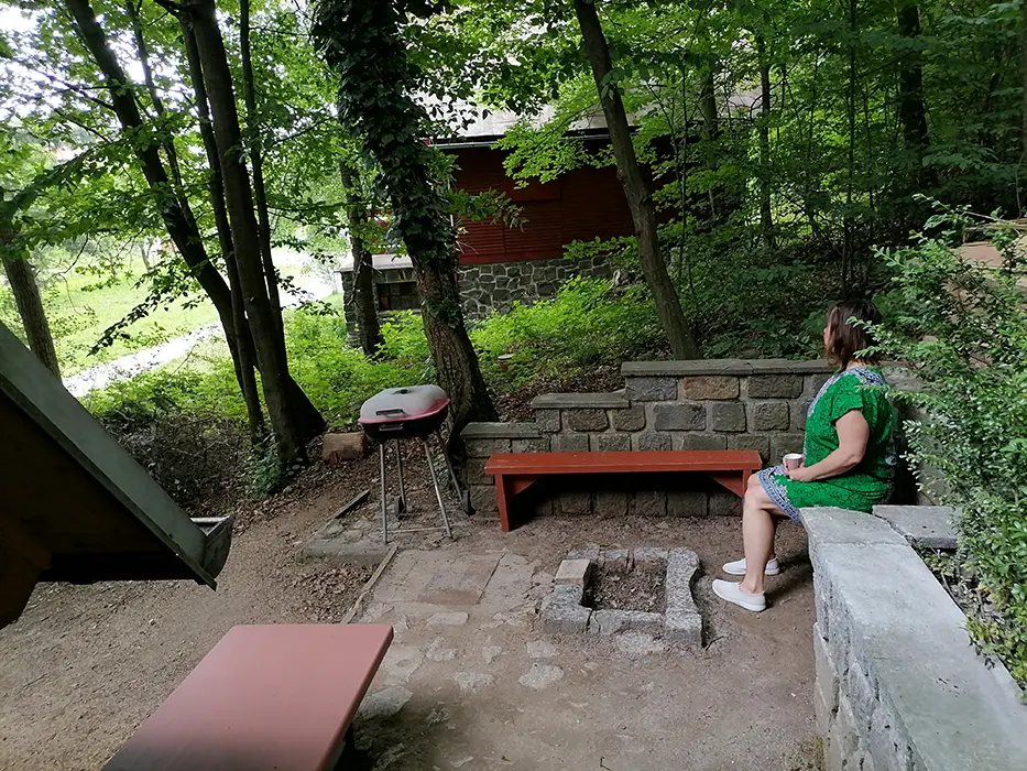 Kryté posezení, gril, venkovní ohniště