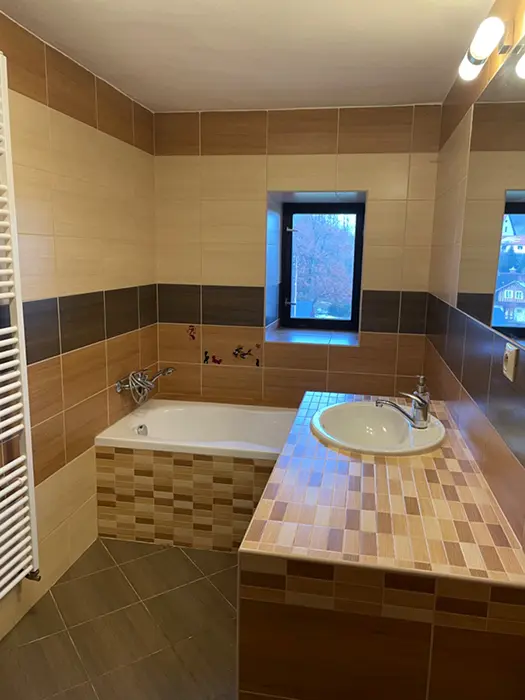 Venkovní posezení, ohniště, trampolína, skluzavka pro děti, pískoviště, koupací sud pro 6 osob