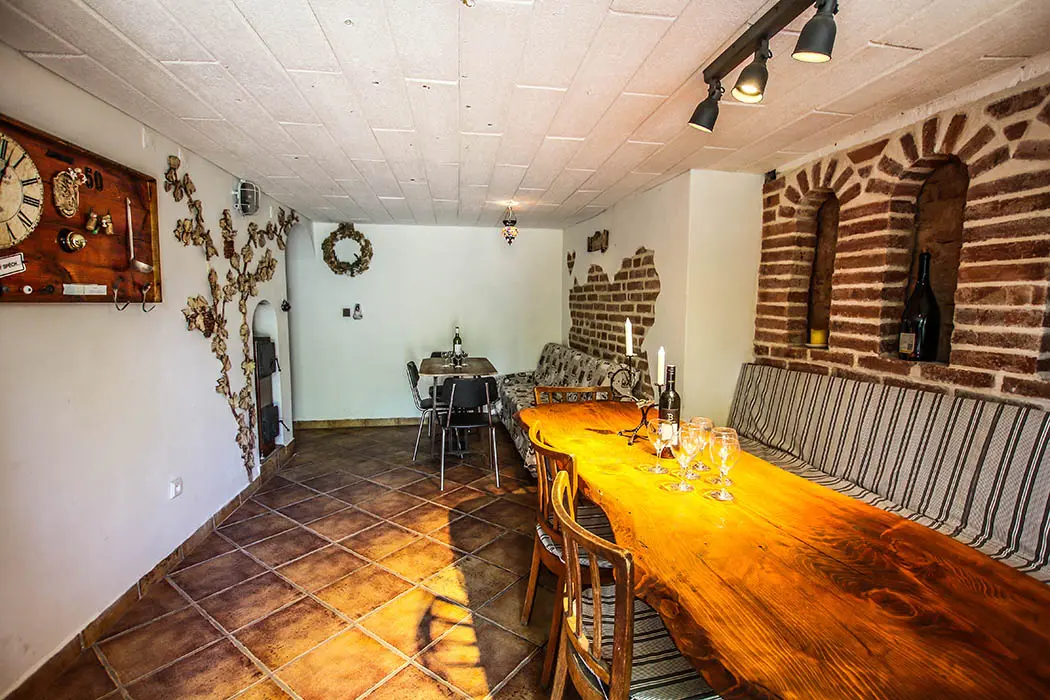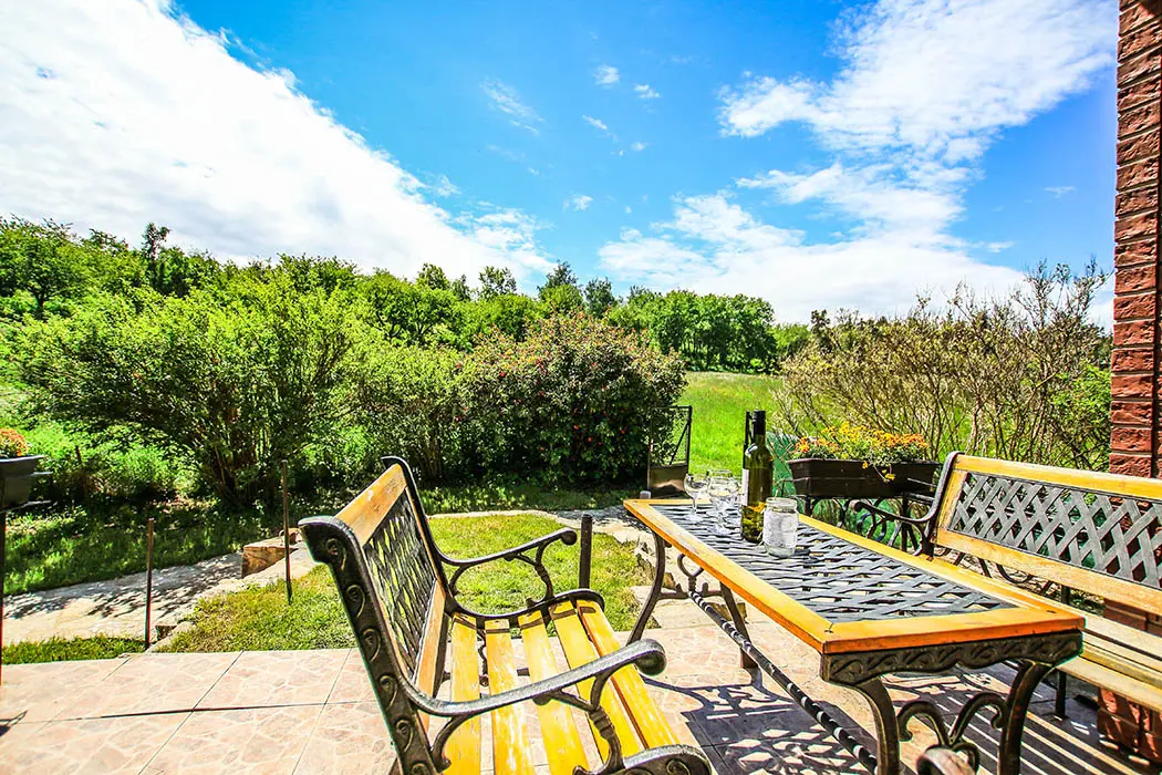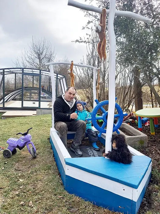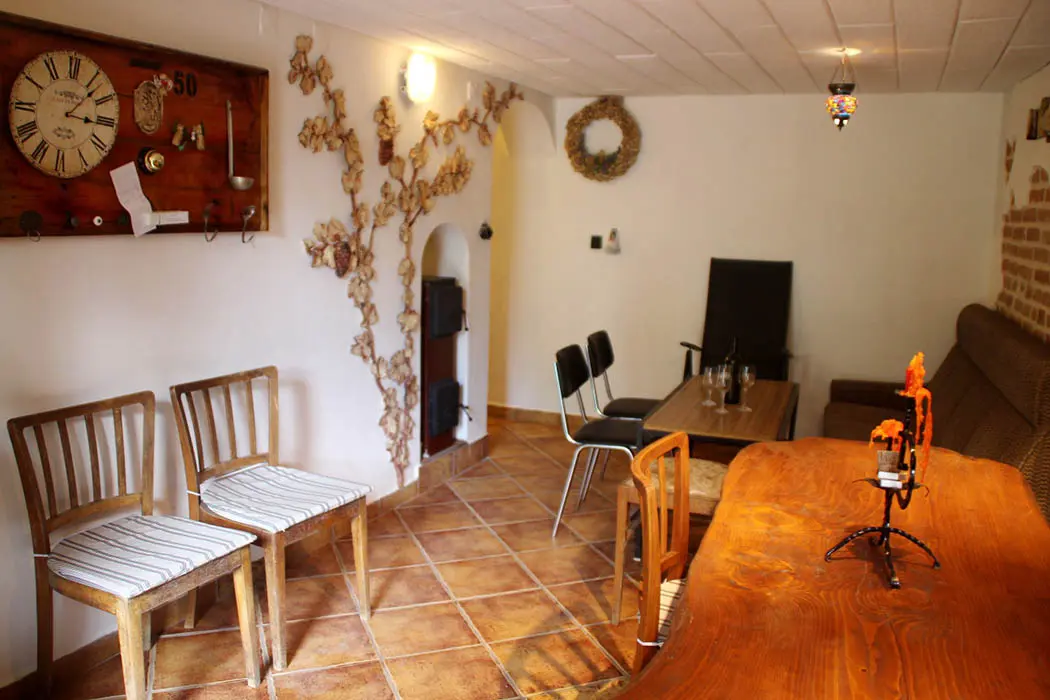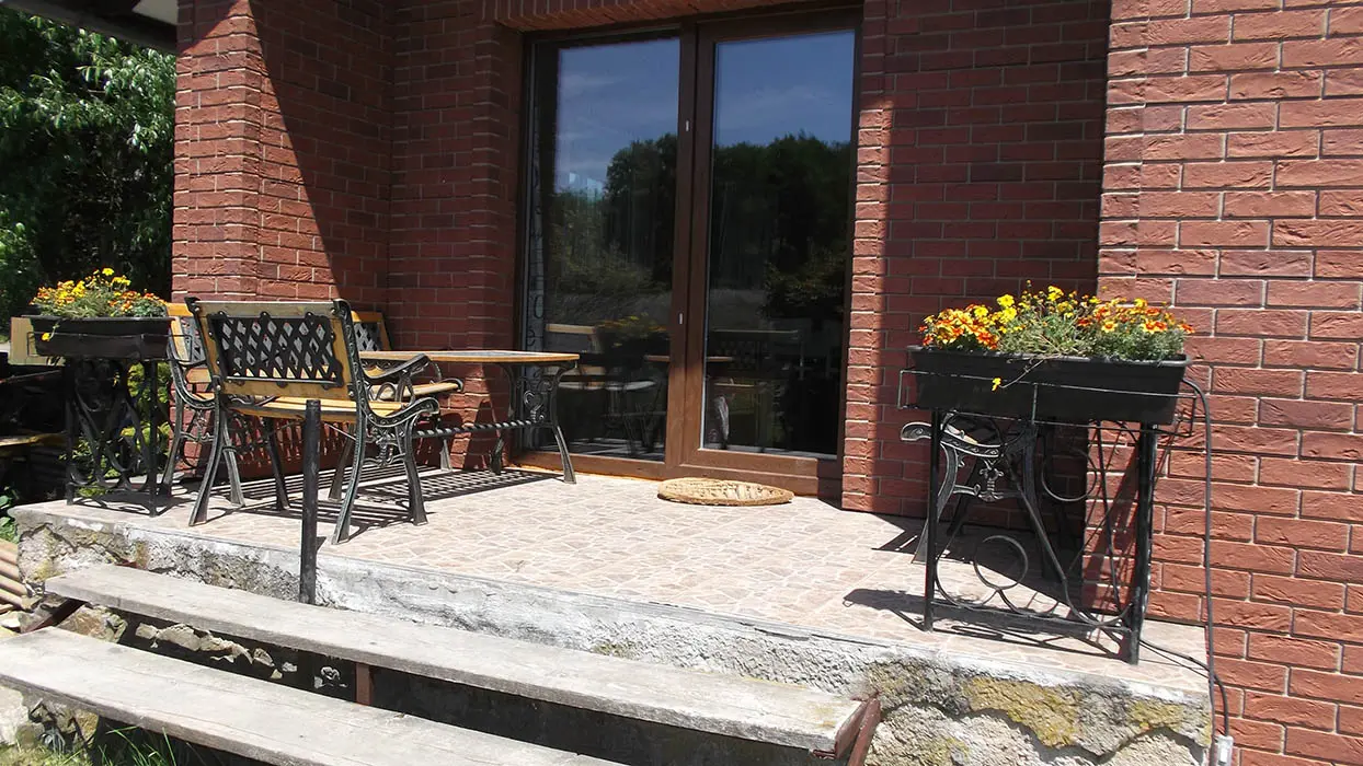 Posezení na terase, možnost uschování kol v uzamykatelné místnosti, v suterénu je vinný sklípek, pro děti trampolína, pískoviště ve tvaru lodě, houpačka a klouzačka, zapuštěný a krytý bazén, vířivka
