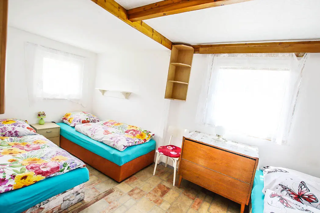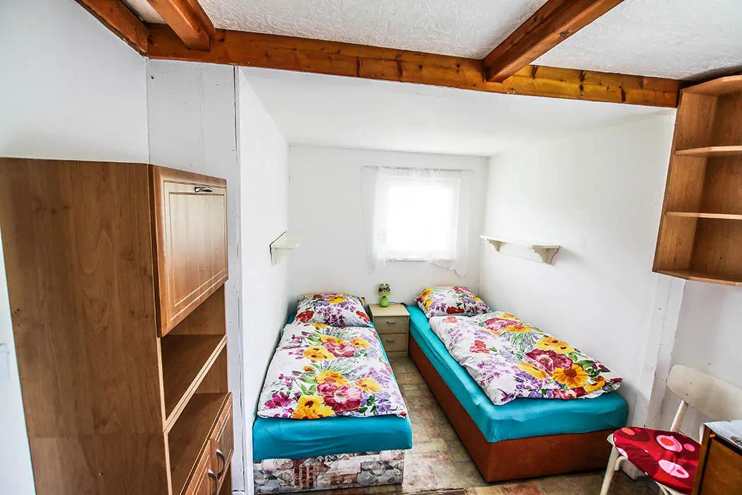 Malá chatka je na oplocené zahradě - za velkou chatou - cca 16 m2 - 2-3 lůžka, malá kuchyňka, soc. zařízení