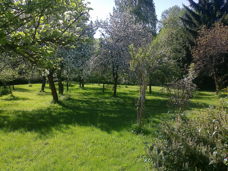 U chalupy v létě, v zimě cca 100 m od chalupy, majitel doporučuje zimní řetěty