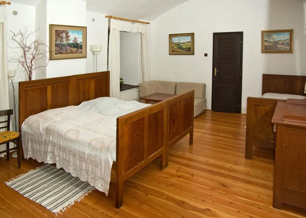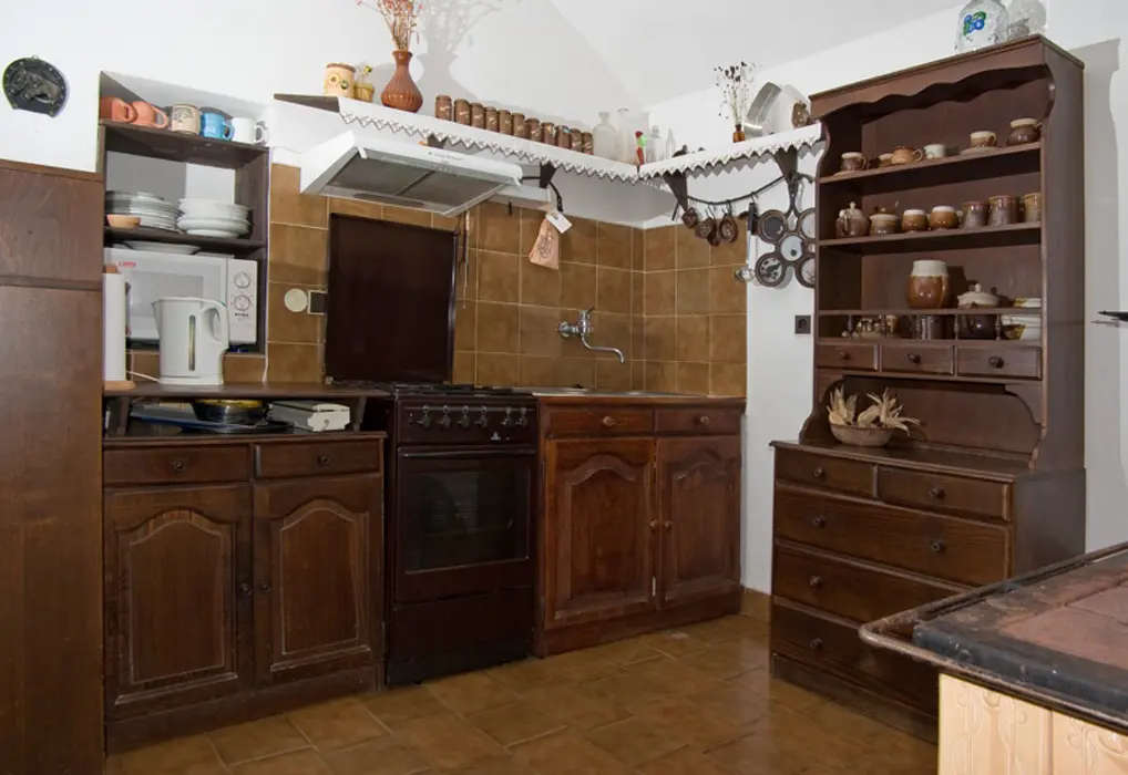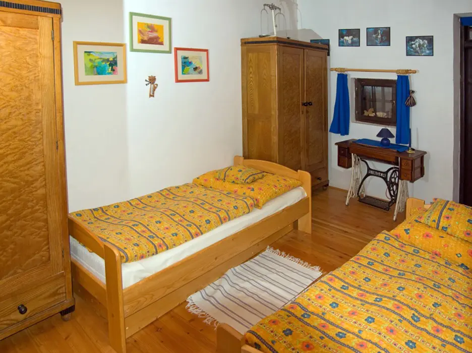 Apartmán je v přízemí - z pokojů je přístup do dvora. 2 ložnice 1x2, 1x3 lůžka. Plně vybavená kuchyně s kachlovými kamny + spaní na "peci". Koupelna s vanou, sprchový kout a WC. Topení - ústřední plynové + v kamnech