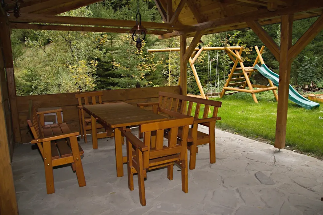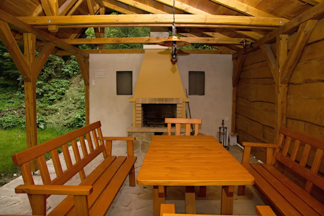 Volné prostranství, veranda, zastřešené venkovní posezení, gril, zahradní nábytek, terasa