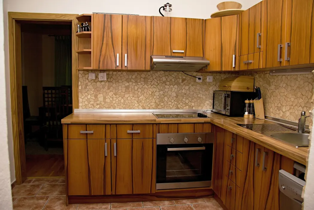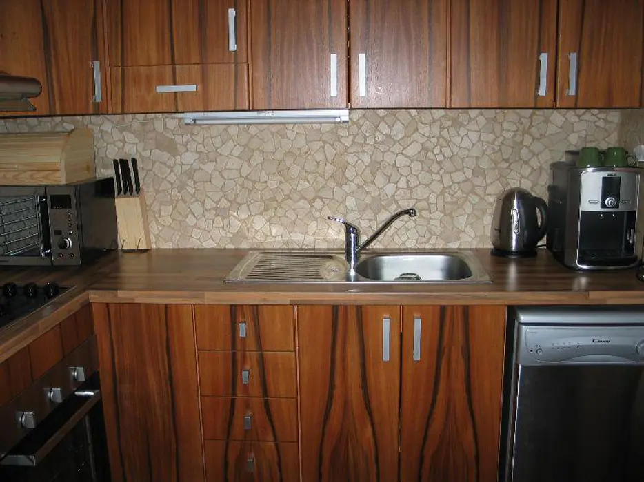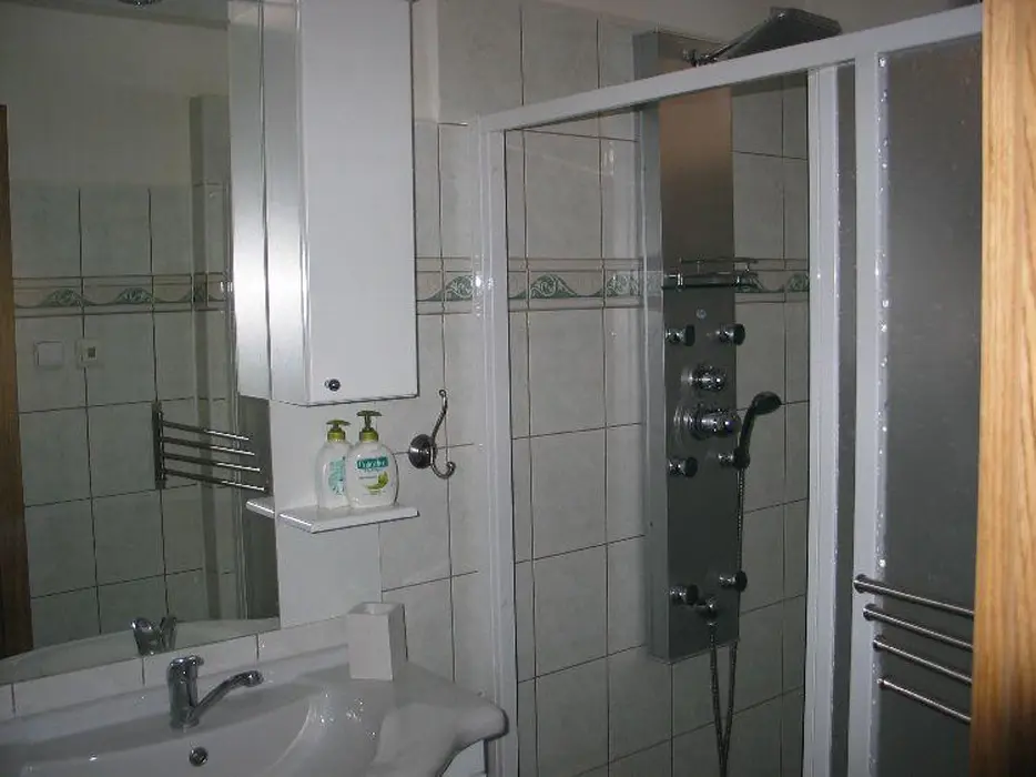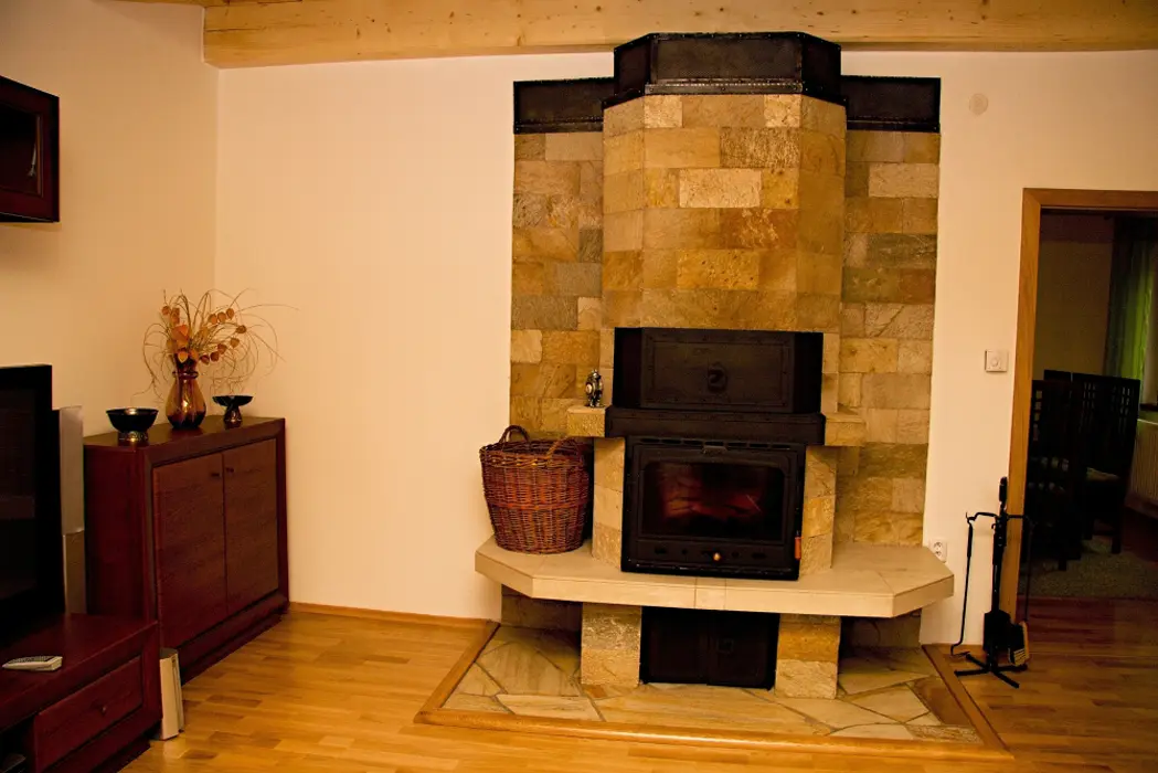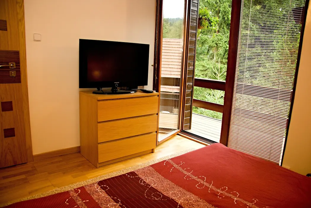 Obývací pokoj - samostatný, krb, TV, SAT, DVD - domácí kino. Kuchyně - sklokeramická deska, el.trouba, lednička, mikrovlnná trouba, myčka, rychlovarná konvice, kávovar, jídelna. 3 ložnice - 2x2, 1x4, každá s LCD. Sociální zařízení - koupelna s masážním sprchovým panelem, 2x samostatné WC. Topení - krb s rozvodem, podlahové, přímotopy.