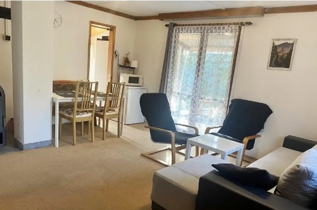 Obývací pokoj s posezením, krbová kamna, TV, možnost 1 přistýlky (rozkládací pohovka). Kuchyňka - základní nádobí, lednice, elektrický sporák, varná konvice. 1 ložnice - 1x4 lůžka. Koupelna s vanou, WC. Topení - el. přímotopy
