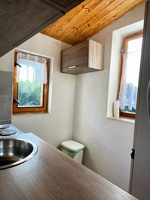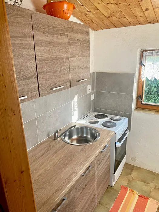7 km Jičín, v obci Kněžnice - na velkém oploceném pozemku se nachází chata a dům majitele, chata má dostatečné soukromí a je od majitelů oddělena živým plotem