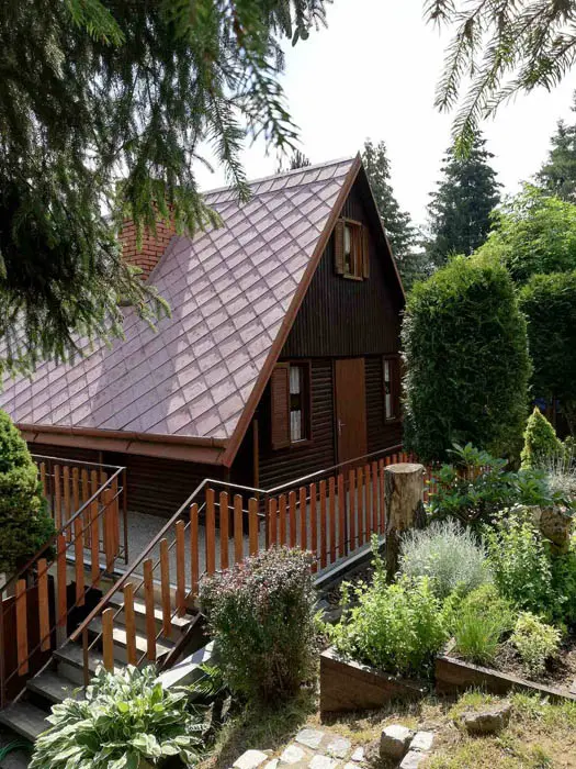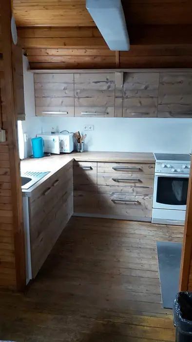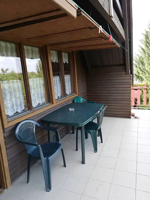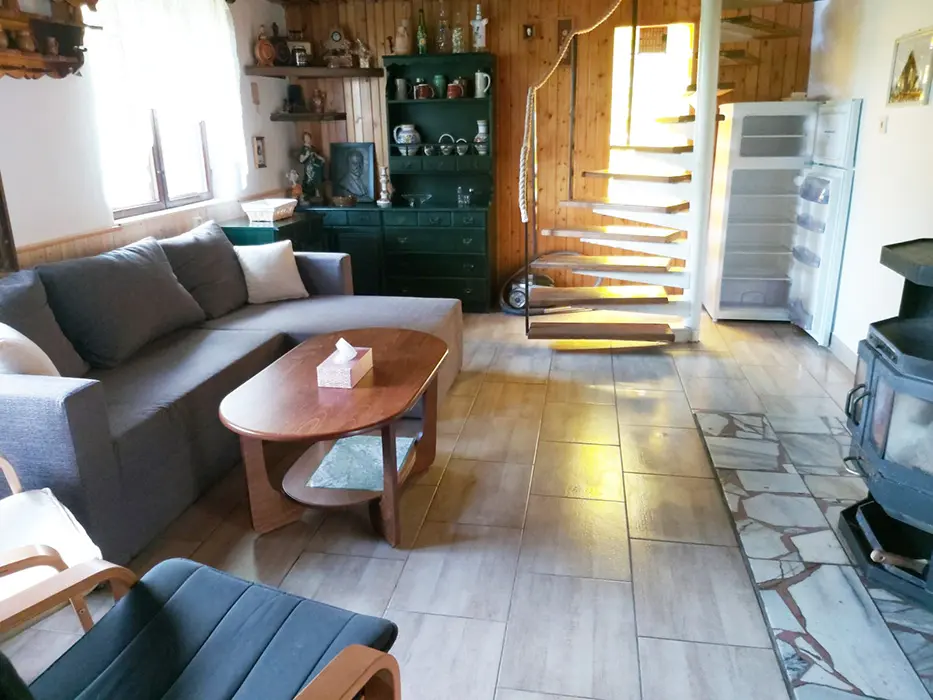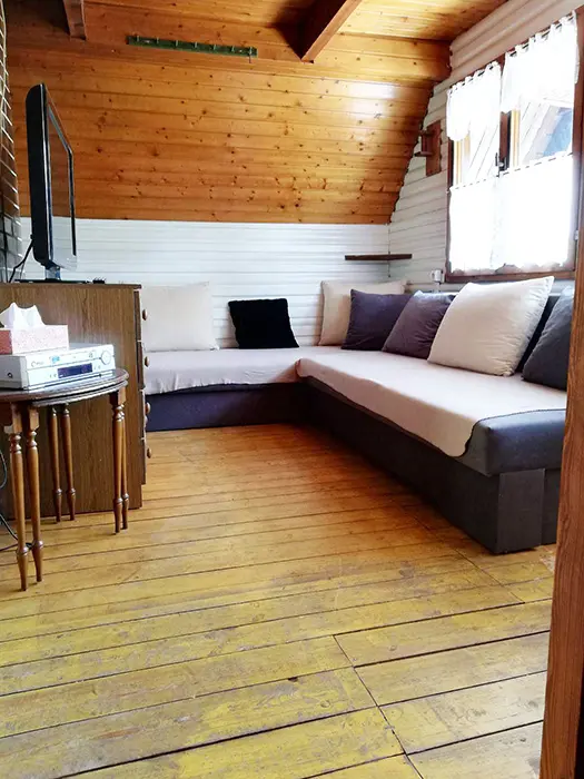 Obývací pokoj s posezením, možnost 2 přistýlek, krbová kamna, kuchyně - el. sporák, varná konvice, mikrovlnná trouba, bojler 80 l, lednice. 2 ložnice - 2x4 lůžka. Sociální zařízení - vana, WC, umyvadlo. Topení - kamna a krb, tuhá paliva, el. přímotopy